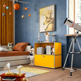 Created by architect Fritz Haller and visionary industrialist Paul Schärer, USM furniture has been made in Switzerland for over 50 years and is recognised the world over. The build quality of USM HALLER furniture and its timeless lines make it an essential design classic, equally at home in offices and the most beautiful interiors, whether classic or modern. Its modular design means that it can be upgraded over time as needs and desires change. The meuble Haller M62 features a drop-down door. The meuble Haller M62 has a chrome-plated steel structure assembled by connecting balls, clad in powder-coated steel panels and mounted on height-adjustable glides.  Classic doors that don't require keys. (Secure on delivery, the doors unlock for the first time using a coin or a normal key)
