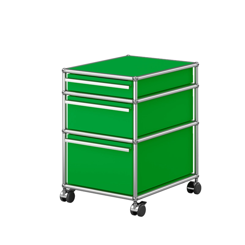 Created by architect Fritz Haller and visionary industrialist Paul Schärer, USM furniture has been made in Switzerland for over 50 years and is recognised the world over. The build quality of USM HALLER furniture and its timeless lines make it an essential design classic, equally at home in offices and the most beautiful interiors, whether classic or modern. Its modular design means that it can be upgraded over time as needs and desires change. The USM Haller M63 pedestal on castors has three drawers, two Inos bins with inserts, and a counterweight. The meuble Haller M63 has a chrome-plated steel structure assembled by connecting balls, clad in powder-coated steel panels and mounted on height-adjustable glides. It's the perfect addition to any home office.