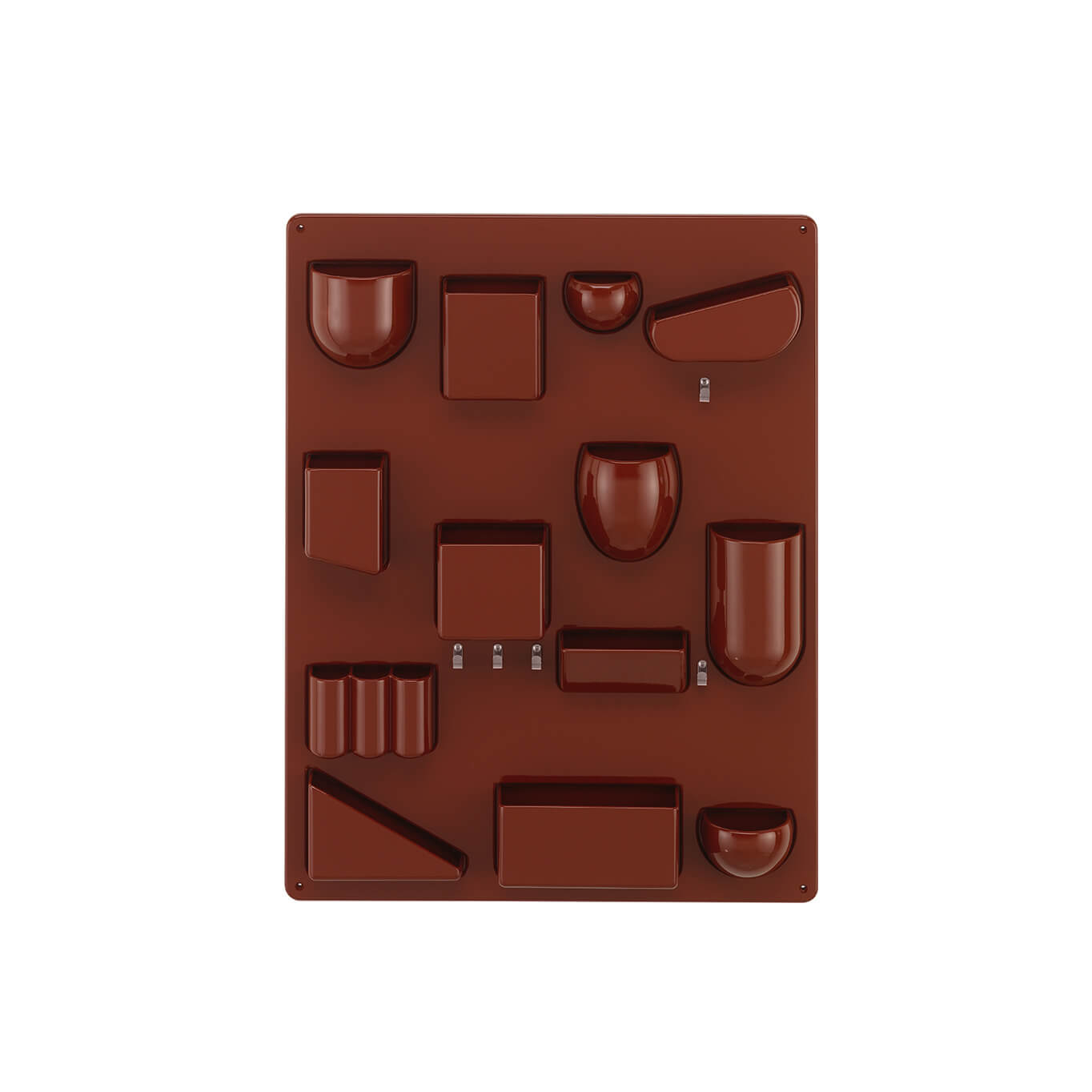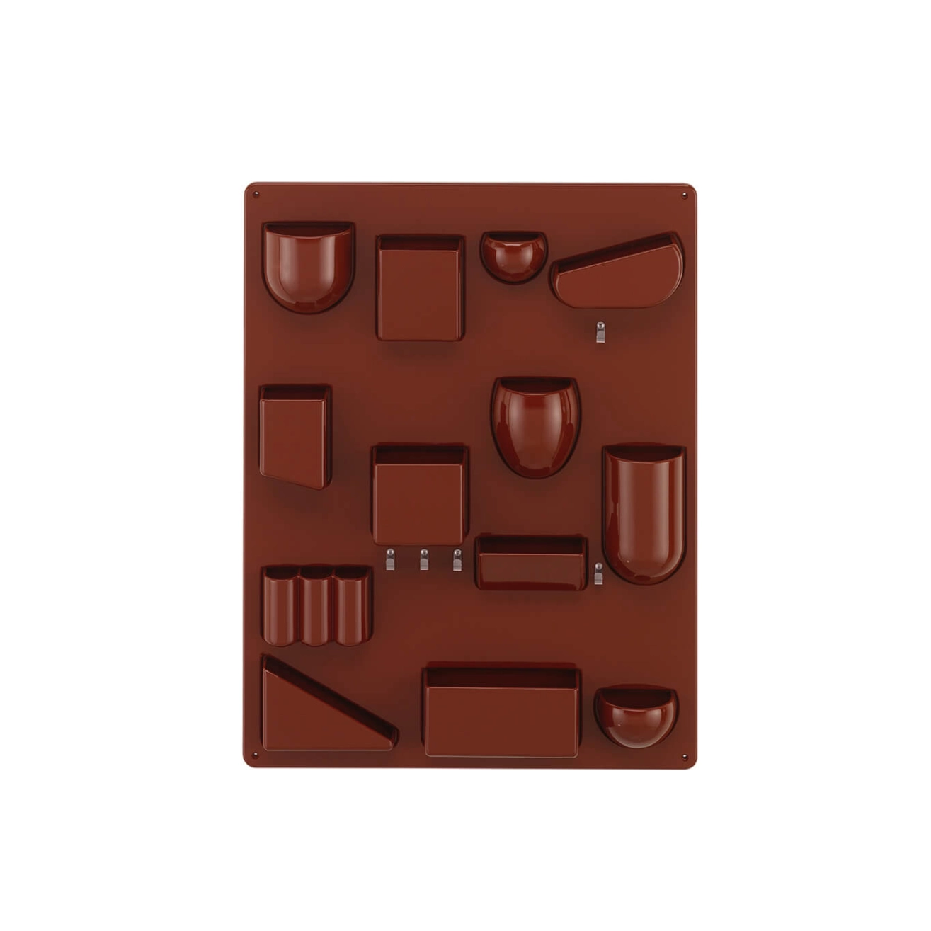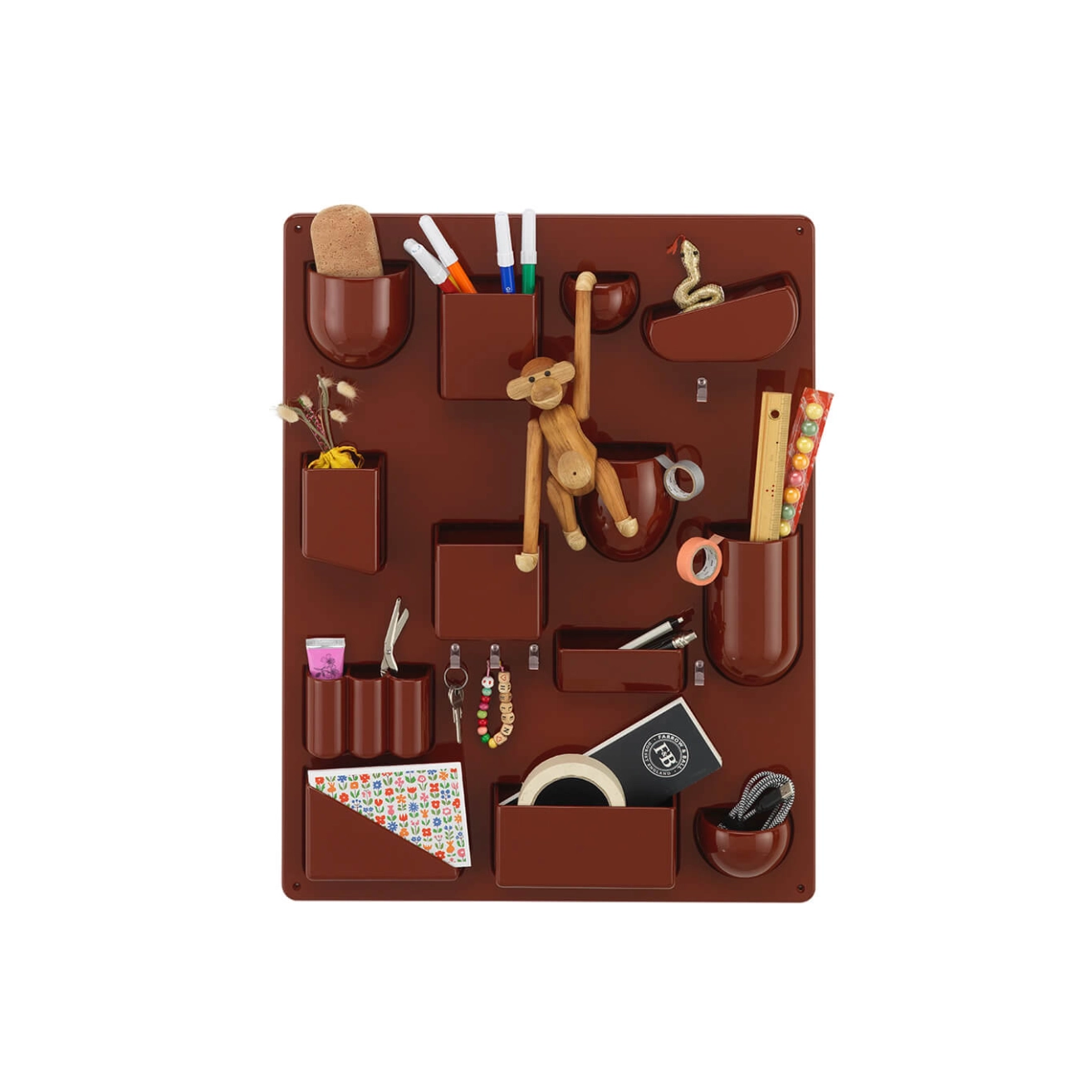Created by Dorothée Becker in 1969, Uten.silo is a very practical wall-hung storage panel. With receptacles of various shapes and sizes, hooks and metal clips, the Uten.Silo brings order to offices, kitchens, workshops and bathrooms. This fun accessory is also suitable for children's bedrooms, where it will teach them to put away their pencils, rubbers and felt-tip pens. It is available in white, black or red to suit each of your rooms. A 70s design icon, the Uten.silo is an accessory that combines industrial precision with a humorous layout, essential for anyone who struggles to keep a tidy space invaded by all those little everyday items. Now produced in recycled plastic by Vitra, Uten.Silo is available in the original 1969 size - Uten.Silo I, as well as the smaller version issued in 1970 - Uten.Silo II.