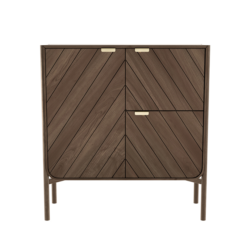 Marius is a collection of storage units for which designer Pierre-François Dubois was inspired by the maritime world. The shape of a ship's hull has been reworked to create the unique shape of the storage units. The geometrical motif, inscribed on the front of the doors or drawers, is reminiscent of boat sails. Published by Hartô, the vaisselier Marius is highly functional in a dining room or hallway. Its small brass handles add a touch of elegance.
