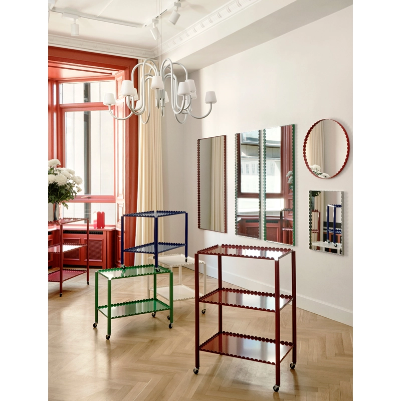 Designed by Belgian duo Muller Van Severen for Hay, the Arcs mirror features a chain of vertical arcs that encircles the mirror to create an elegant, scalloped border. The Arcs mirror is available in a range of colours and several sizes and shapes, from a small round mirror to a large rectangular mirror. This variety of models means that the Arcs mirror can find its place in every room of the house.