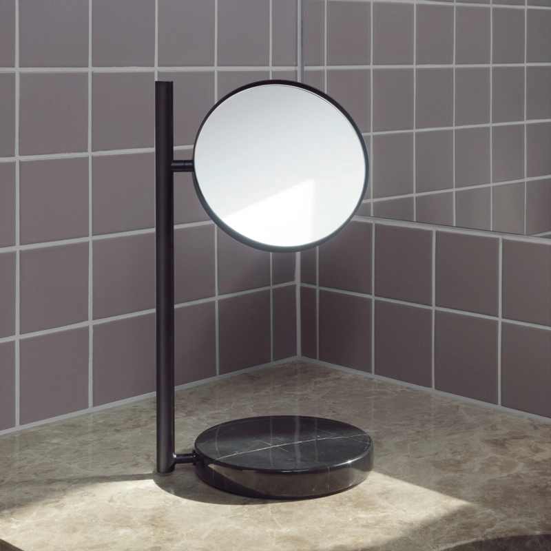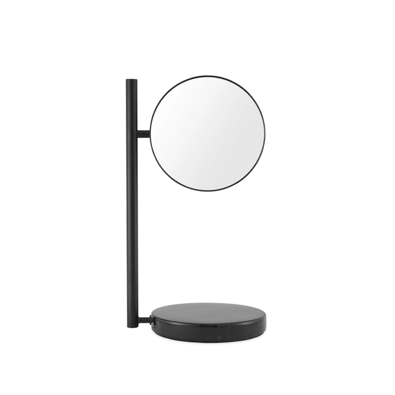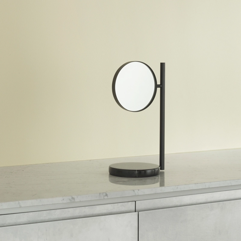 Offered by Normann Copenhagen, the Pose mirror is a beautiful and practical object for everyday use. A round base in solid marble lends solidity to the design and provides a decorative platform for jewellery or other personal items, while the circular mirror floats elegantly above, creating a coherent yet contrasting expression. The double-sided Posé mirror features an ordinary mirror on one side and a 3x magnifying mirror on the other. Thanks to its magnifying function, Pose is ideal for morning or evening routines in the bathroom, dressing room. With its 360° swivel design, the Pose makes it easy to move from one side of the two mirrors to the other. Pose can be easily moved anywhere you want to pose and is available in two variants: white or black.