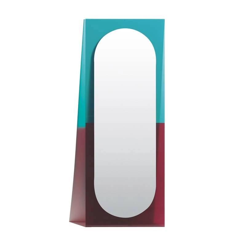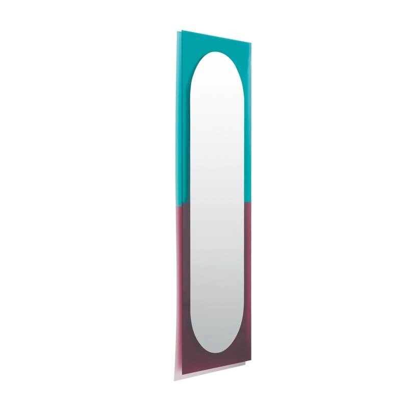 Assembled, the small models form a mosaic of solids and voids. The generous sizes of the two larger models mean they can be used in a variety of ways around the home, either vertically or horizontally. The original and ingenious hanging system allows the Wander mirror to levitate on the wall, projecting its colours onto it in a halo.