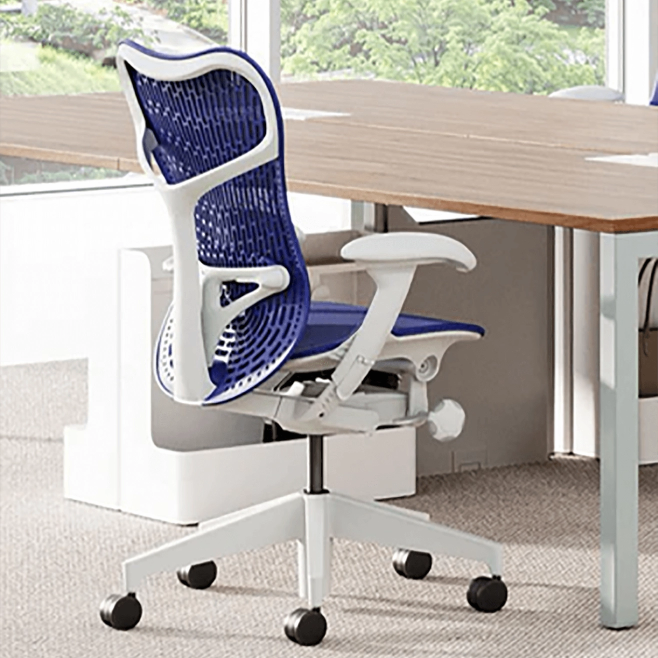 Mirra 2 Butterfly Ultrmarine Blue office chair strikes the perfect balance between advanced ergonomics and dynamic design. It is made for those whose working style demands flexibility and fluid motion. As soon as you sit down, the Mirra 2 responds instantly to your posture. It adjusts subtly to each micro-movement, offering personalised support without compromising freedom. Its lightweight structure and intelligent mechanisms make it an ideal choice for shared workspaces or long days in a flexible office environment. The Butterfly Back combines an innovative polymer structure with a breathable textile for precise support and enhanced comfort. It conforms to the shape of your back while allowing air to circulate, ensuring a cool and stable sitting experience throughout the day. The breathable AireWeave 2 suspension seat evenly distributes your weight and prevents heat build-up. A flexible lumbar loop allows for lateral twists and stretches, while the Harmonic 2 Tilt mechanism follows your body’s natural movement, offering smooth and balanced recline. Presented here in a warm and elegant ochre finish, the Mirra 2 Butterfly merges technology, aesthetics, and durability – a work tool designed for comfort in motion.