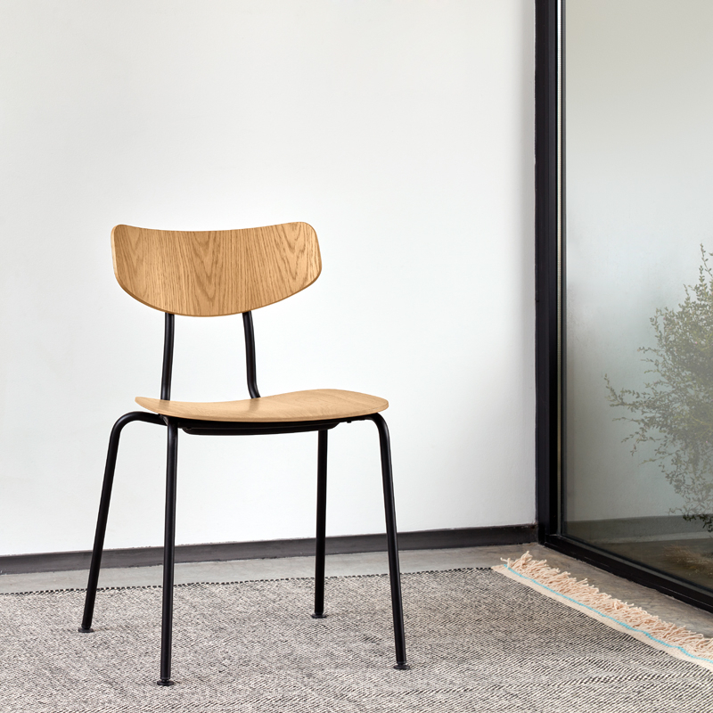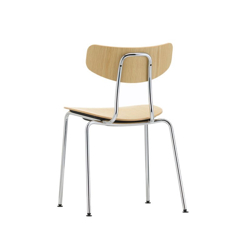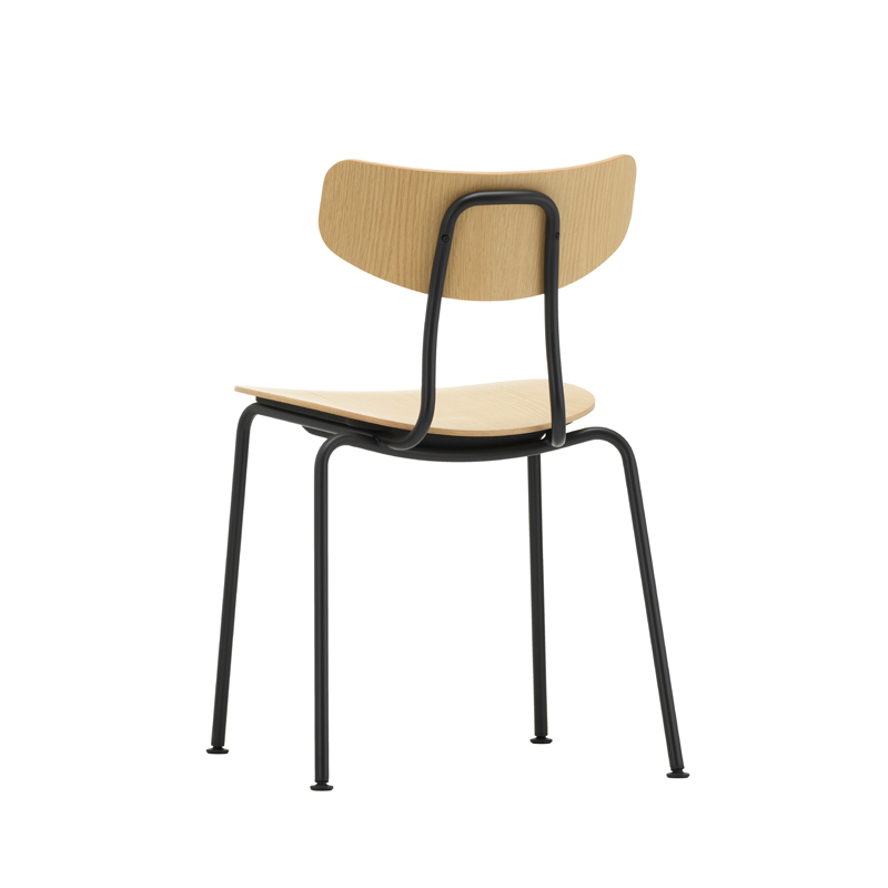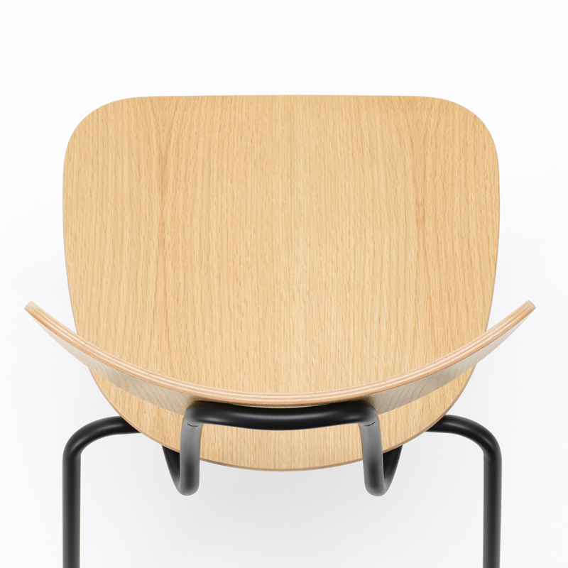 Moca base is made up of two tubular steel arches on which two veneer-coated plywood shells are mounted, forming a comfortable, anatomically shaped seat and backrest. The clever design of the stacking protector attached between the seat and the back ensures optimal protection of the veneer surface. Moca meets all the usual safety standards so it can be used both in private settings and restaurants and other public spaces.