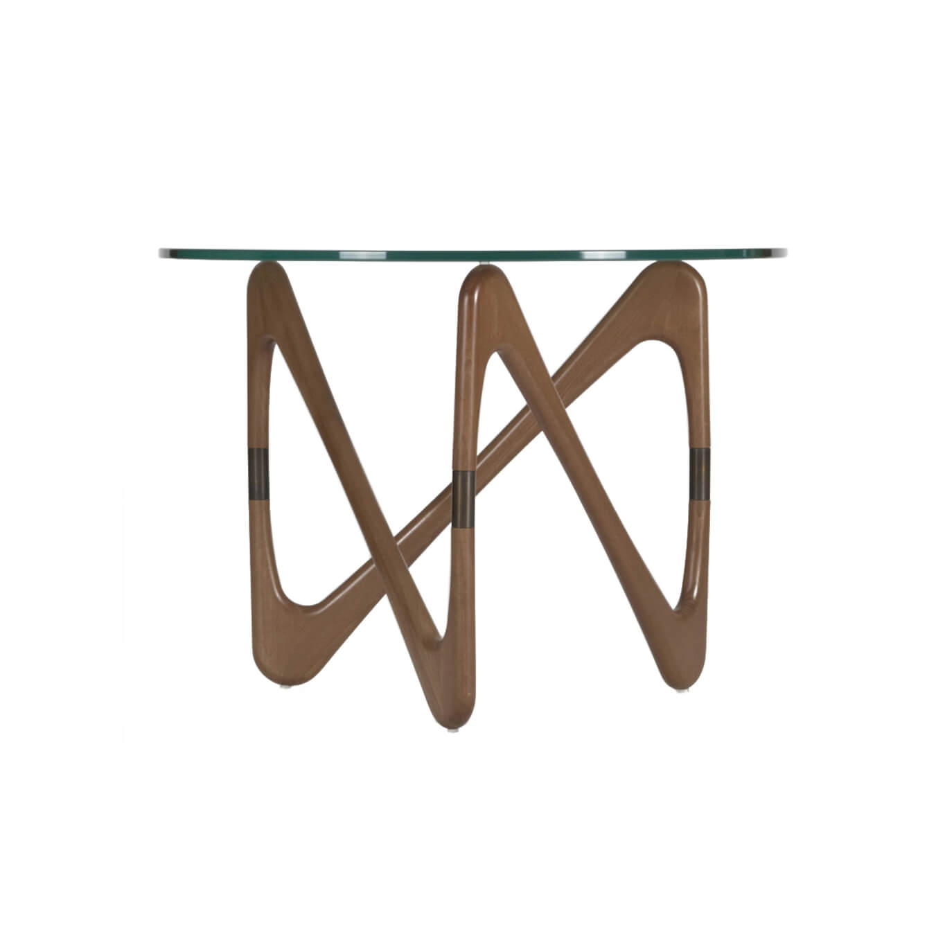 design coffee table, by an unknown author, was discovered on a market in Parma, Italy. The simplicity of its lines in no way detracts from the intriguing and complex nature of this assembly of 3 pieces of wood, and immediately brings to mind the ribbon of