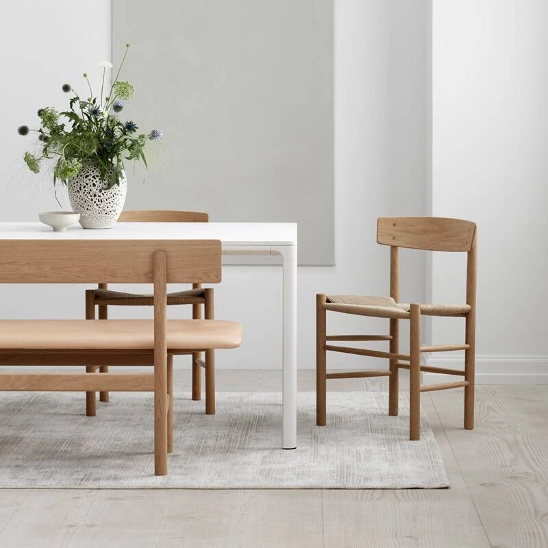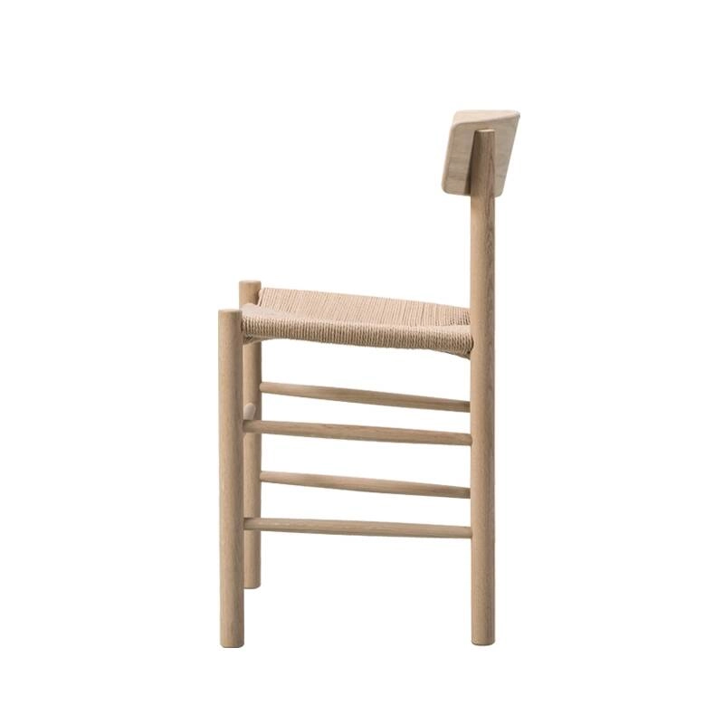 The famous J39 chair, with its hand-woven paper rope seat, was designed by Borge Mogensen in 1947. Published by Fredericia, it quickly became very popular thanks to its simplicity and versatility. Based on an evolutionary design approach, the chaise J39 is inspired by the popular furniture of the Mediterranean region. Its sturdy, durable yet sophisticated design makes it suitable for use in domestic environments as well as in public spaces such as universities, cafés and restaurants. With its timeless look, the J39 chair by Fredericia easily complements all styles of furniture and decor.