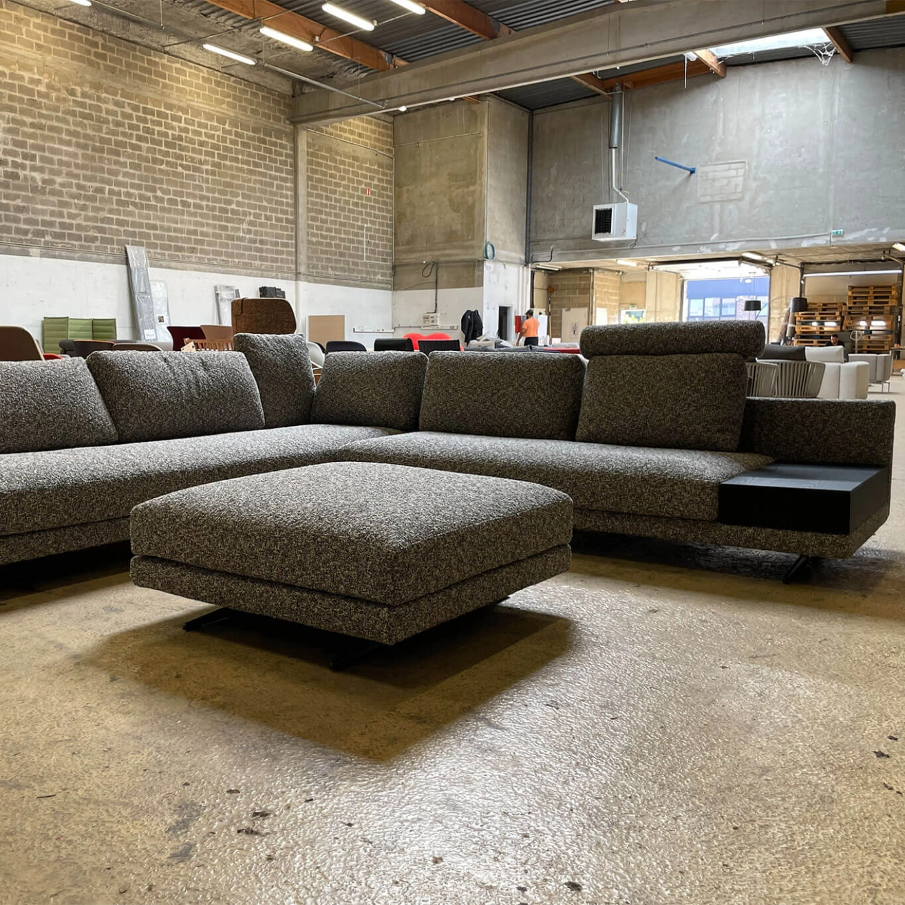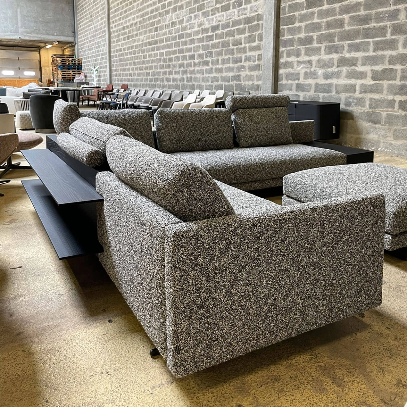Poliform. Characterised by its minimalist structure and light, graphic silhouette, Mondrian redefines contemporary living spaces with an elegant presence and unparalleled compositional freedom. Designed as a modular system, Mondrian offers endless possibilities of configuration: from linear layouts to corner or peninsula compositions. Its slender metal feet support a floating frame that accommodates a generous range of elements such as cushions, armrests, wooden shelves, integrated coffee tables and backrests. With a choice of removable fabric or leather upholstery and two seat depths, the Mondrian sofa merges comfort and sophistication. Its architectural simplicity is enriched by thoughtful details that balance form and functio, making it a refined focal point in any contemporary interior.