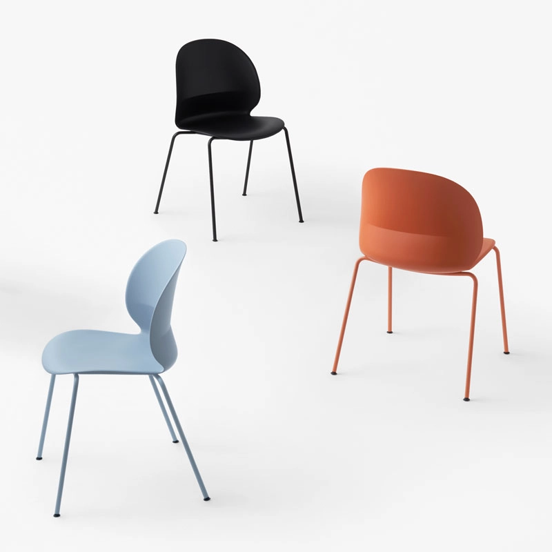 N02 Recycled is a solid, stackable chair designed by Japanese studio Nendo, which drew its inspiration from the fold of a sheet of paper lying on the designer's desk. The image of the folded paper results in a fold in the shell of the chair, allowing the shape to support both the upper and lower back. The shell of the chair is made of circular plastic, which means that it is made of recycled plastic and can also be recycled later on. The plastic in the N02 Recycled Chair by Fritz Hansen comes from household waste, plastic collected, processed and recycled in Central Europe. Leg and shell options make N02 an ideal solution for a wide variety of contract environments such as meeting rooms, canteens and presentation spaces. The soft edges make this chair extremely comfortable, even when sitting for long periods of time.