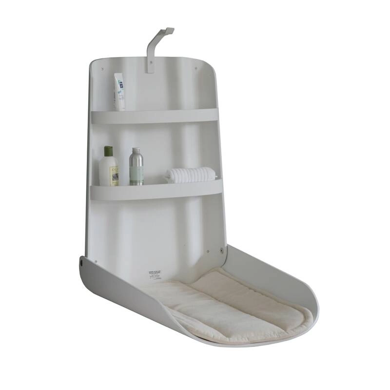Nathi is an ergonomic changing table designed by Bo Ekström for Bybo Design. This functional element with its clean, rounded lines is perfect for small spaces in the children's bedroom or bathroom. Nathi is easy to open and close with just one hand, so you can hold baby in your arms before placing him gently on the table. With two shelves with protective edges, it's a safe place for baby. The nappy changing table comes with an ecru mattress that adds softness and comfort with its soft, rounded design, making it a real cocoon for changing your baby. Made from a warm, noble material (laminated beech wood), the Nathi changing table is a must-have addition to make life easier as a parent and a great gift idea for birth lists.