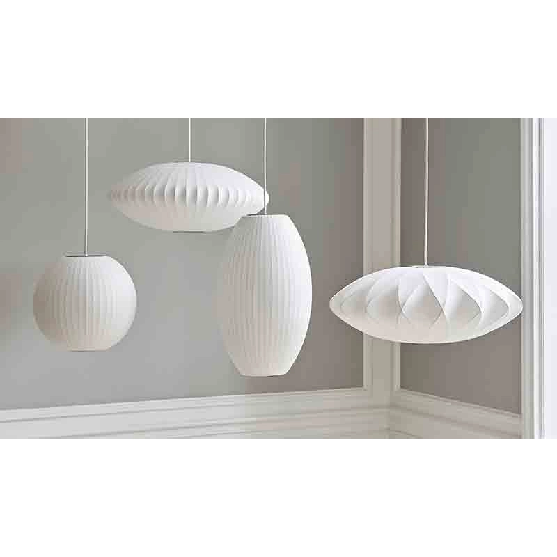 Designed by iconic American designer George Nelson in 1947, and first produced in 1952, the Bubble lamp was a revolution in the modern lamp industry. Available in different sizes and organic shapes, this elegant collection is inspired by a set of Swedish silk lights that Nelson wanted for his office but found too expensive. Employing the ingenuity that so characterises his work, he decided to use a spray plastic, developed by the US military, and apply it to a lightweight steel structure to produce these luminous sculptures. Iconic and timeless, this suspension lamp reissued by Hay will find its place in all interior styles, on its own or in a composition of different shapes and sizes.