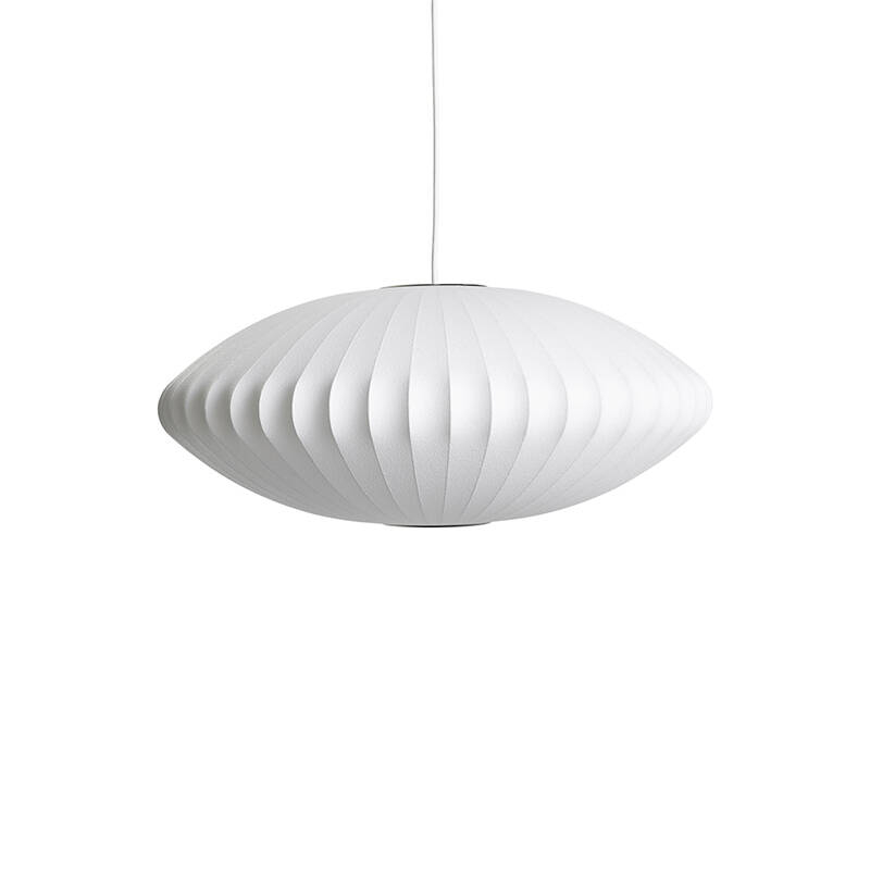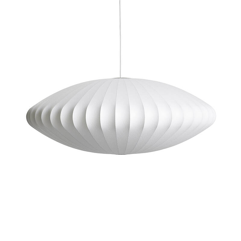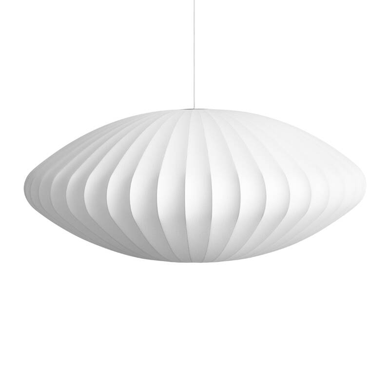 Bubble lamp was a revolution in the modern lamp industry. Available in different sizes and organic shapes, this elegant collection is inspired by a set of Swedish silk lights that Nelson wanted for his office but found too expensive. Employing the ingenuity that so characterises his work, he decided to use a spray plastic, developed by the US military, and apply it to a lightweight steel structure to produce these luminous sculptures. Iconic and timeless, this suspension lamp reissued by
