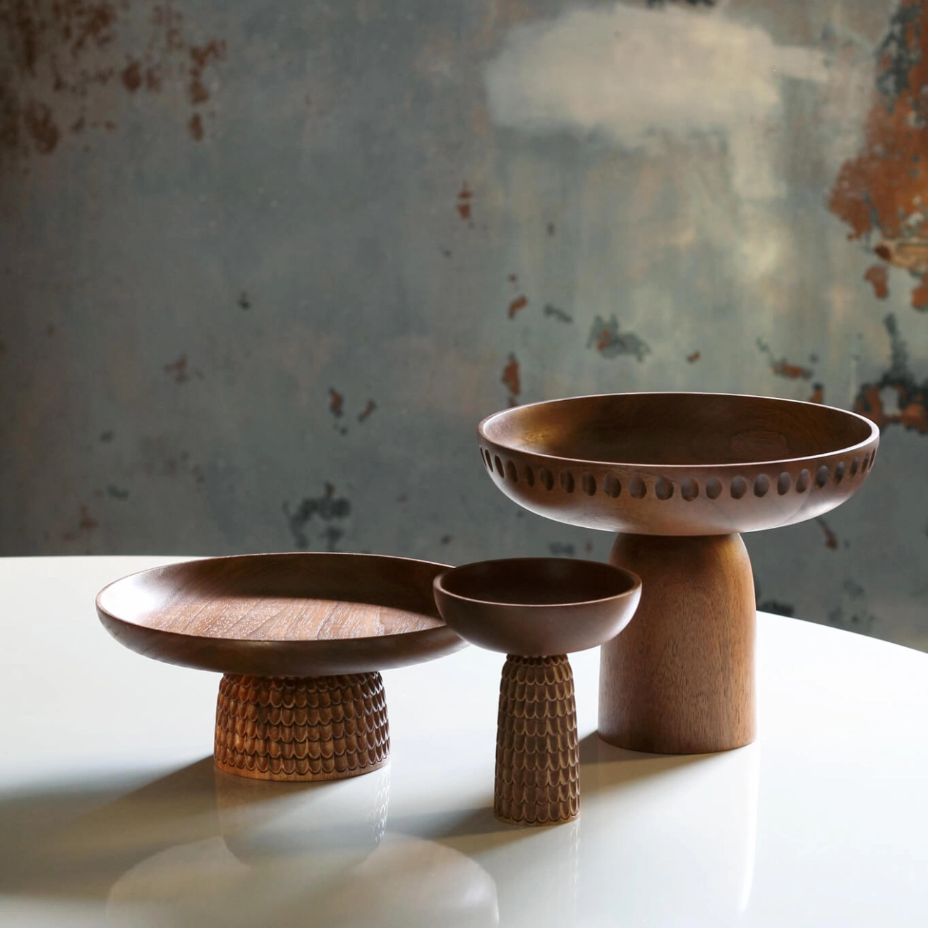 The centerpiece Nera stands out through its sculptural elegance and almost architectural presence. Designed as an object that is both functional and decorative, it structures the table while allowing the space to breathe, creating a subtle dialogue between form, material, and use. Edited by Zanat, it highlights finely crafted woodwork, where each curve is carefully designed to reveal the natural richness of the material. With Nera, the artisanal gesture becomes a decidedly contemporary language. The lines are restrained yet expressive, evoking a masterful balance between tradition and modernity. The delicately worked surface captures the light and gives depth to the object, enhancing its tactile and sensory character. Imagined by designer Monica Förster, this centerpiece expresses a sensitive vision of design, where emotion arises from simplicity and the precision of proportions. Nera thus embodies a strong yet discreet piece, capable of blending harmoniously into a variety of interiors, from the most minimalist to the warmest. Through this centerpiece, Zanat once again affirms its commitment to artisanal craftsmanship, sustainability, and timeless aesthetics, transforming an everyday object into a true statement piece.