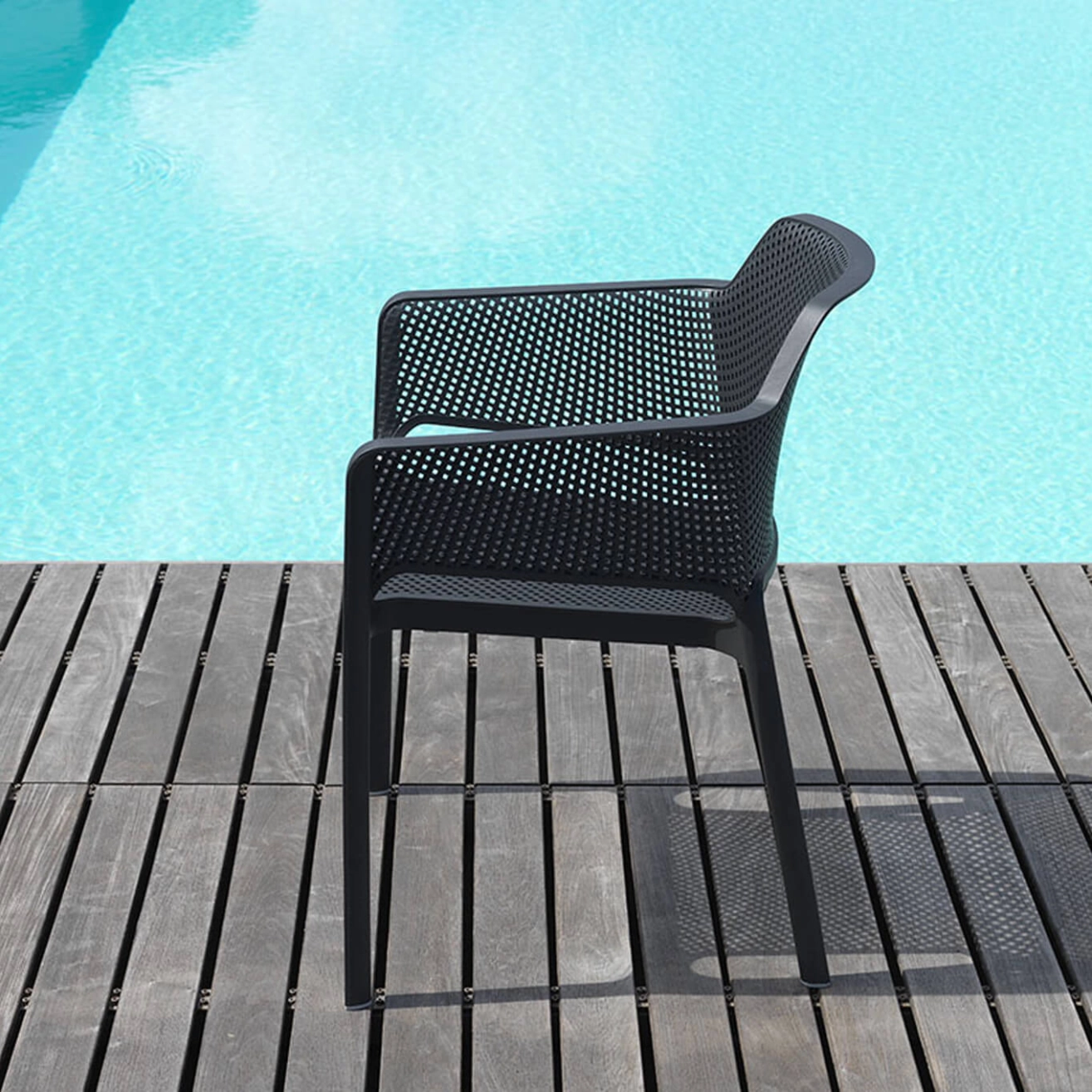 Designed by Raffaello Galiotto, the Net chair by Nardi stands out for its contemporary style and remarkable functionality. Made of high-quality polypropylene reinforced with fiberglass, the Net offers a comfortable and durable seat, ideal for outdoor use. Its perforated design, characteristic of the Net collection, ensures excellent ventilation while adding an elegant and modern touch to any space. Available in a wide range of colors, it adapts to all styles and settings. Stackable and easy to maintain, this chair combines aesthetics and practicality, reflecting all the craftsmanship of Nardi.