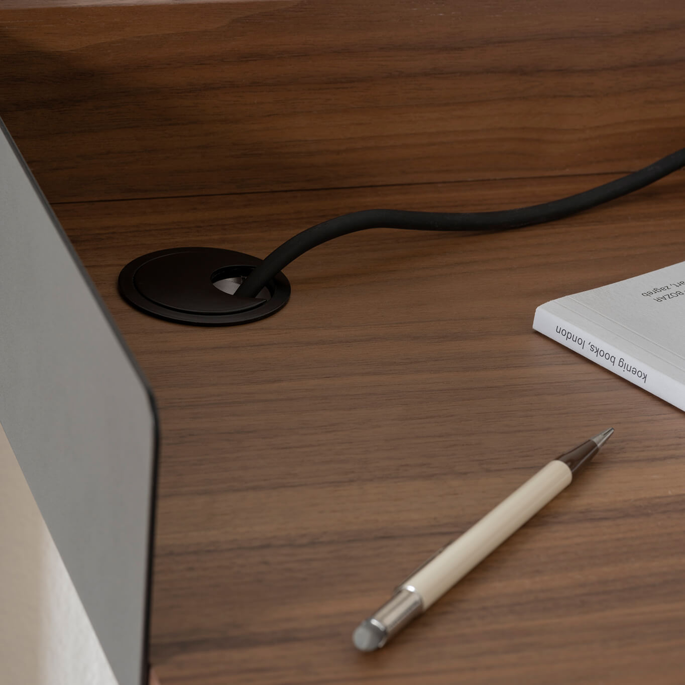 The Study Shelf by New Works is designed to provide a functional space for work, homework, drawing, or any other creative activities, seamlessly fitting into any room of your home. The New Works desk, on the other hand, takes design cues from the Standard Shelf, with its extended metal supports framing the tabletop, giving it a modern and airy feel. Practical, it features a built-in cable management system that helps hide and organize cords neatly, maintaining a clean and harmonious atmosphere in your home.