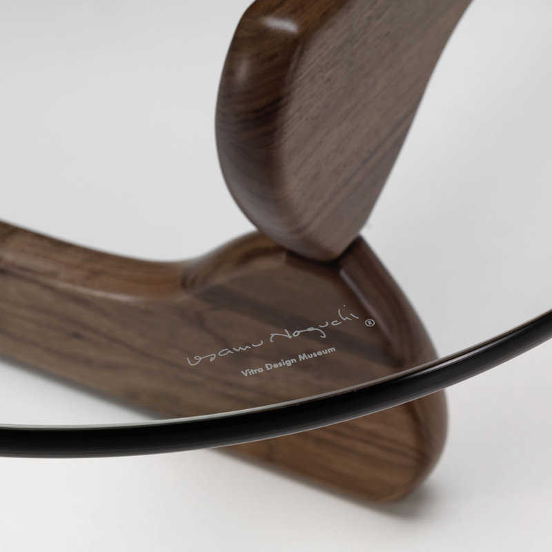Noguchi Coffee Table Vitra has a solid wood base with lacquer finish and rounded edges, a 19 mm thick glass top with rounded edges.