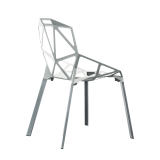 One was created by designer Konstantin Grcic for Magis. Originally designed like a football with faces assembled at a certain angle, this chair stands out thanks to its 3D geometrical shapes and lightweight feel. It is stackable and features anodised aluminium legs and a cast aluminium shell, treated with fluorinated titanium and finished in different colours. It can be used both indoors and outdoors. The seat is available in black, red, white or anthracite grey. One is also available as a tall stool.