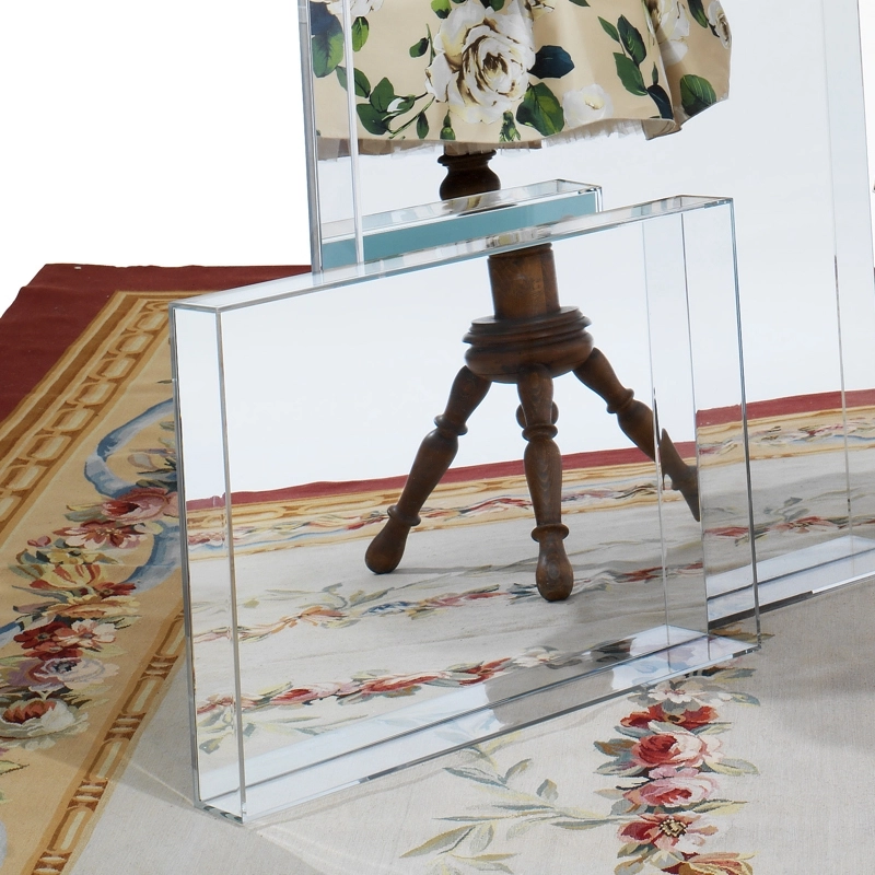 Only Me is a collection of mirrors by Philippe Starck, whose name reflects the Narcissus present in each of us. Available in a square or rectangular version, this mirror has an 8cm deep opaque or transparent frame. This formal detail can also be used as a small shelf.Only Me, produced by Kartell, will fit easily into any room, from the entrance hall to the bathroom. All mirrors can be hung in both directions.