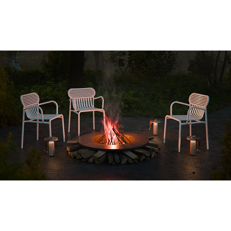 With Week-End, the French brand Petite Friture, casts its singular gaze on summer and proposes with the Studio Brichet-Ziegler a graphic and contemporary approach to garden furniture. This one is played with a rhythm of horizontal and vertical bands skillfully placed on a structure with strong lines. The strips of this small armchair that characterize the Week-End collection published by Petite Friture, are made from laser-cut aluminium sheets in a single piece and not assembled slats, allow the removal of screws or uncomfortable welds. The work of horizontal and vertical slats, like stripes, emphasizes solids and voids, affirming the identity of the collection. The Week-End collection is a complete range of outdoor furniture. The precise colors selected for this collection mark alone or in combination the skyline of a balcony, terrace or garden. This small armchair is available in several colors such as black, yellow, jade green ... The colouring of the collection Weekend, from Petite Friture, in grained UV epoxy powder paint guarantees impeccable shade retention over time. The small armchair design Weekend proposed by Petite Friture was designed with the obsession of making the most of the materials and production techniques available to designers. Made of aluminium, a material selected for its lightness and weather resistance, the Week-End collection combines aesthetic comfort and practicality. Indeed, this collection is resolutely designed around a practical use because all the seats are stackable.