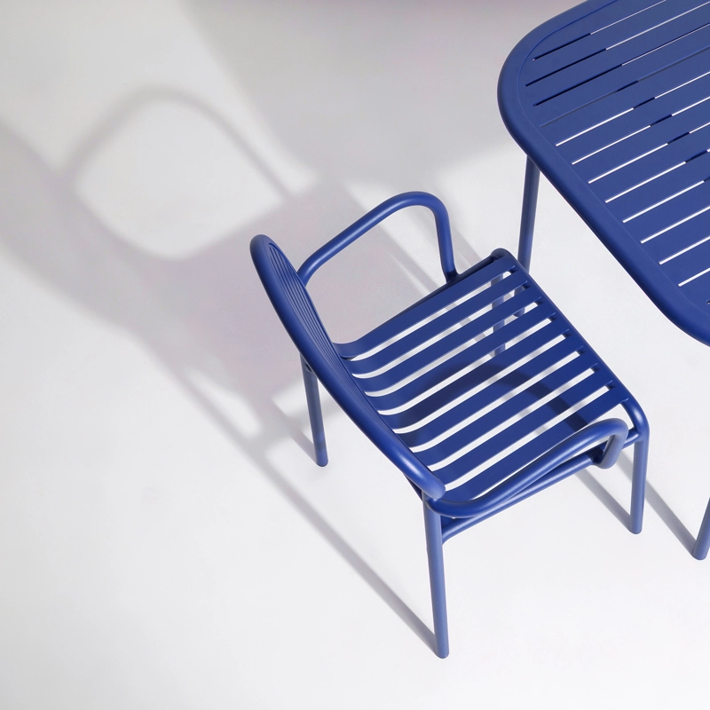 With Week-End, the French brand Petite Friture, casts its singular gaze on summer and proposes with the Studio Brichet-Ziegler a graphic and contemporary approach to garden furniture. This one is played with a rhythm of horizontal and vertical bands skillfully placed on a structure with strong lines. The strips of this small armchair that characterize the Week-End collection published by Petite Friture, are made from laser-cut aluminium sheets in a single piece and not assembled slats, allow the removal of screws or uncomfortable welds. The work of horizontal and vertical slats, like stripes, emphasizes solids and voids, affirming the identity of the collection. The Week-End collection is a complete range of outdoor furniture. The precise colors selected for this collection mark alone or in combination the skyline of a balcony, terrace or garden. This small armchair is available in several colors such as black, yellow, jade green ... The colouring of the collection Weekend, from Petite Friture, in grained UV epoxy powder paint guarantees impeccable shade retention over time. The small armchair design Weekend proposed by Petite Friture was designed with the obsession of making the most of the materials and production techniques available to designers. Made of aluminium, a material selected for its lightness and weather resistance, the Week-End collection combines aesthetic comfort and practicality. Indeed, this collection is resolutely designed around a practical use because all the seats are stackable.