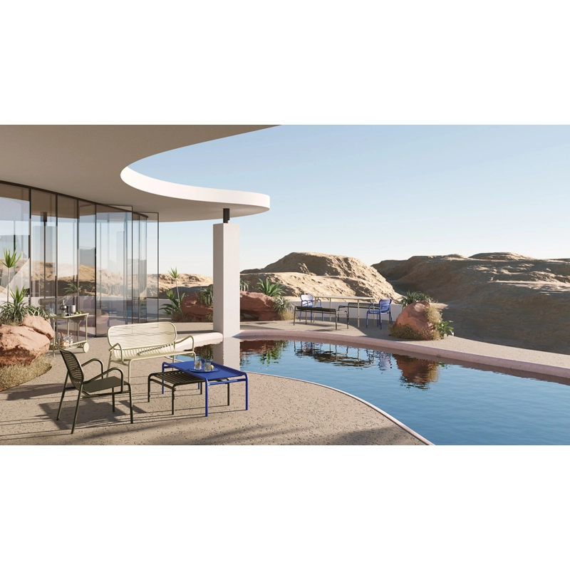 With Week-End, the French brand Petite Friture sets its singular gaze on summer and proposes with the studio Brichet-Ziegler a graphic and contemporary approach to garden furniture. The Week-End collection is a complete range of outdoor furniture. The precise colors selected for this collection mark alone or in combination the skyline of a balcony, terrace or garden. Taking the characteristic bands of the collection, this coffee table is available in several colors such as black, yellow, jade green ... The colouring of the Week-end collection, by Petite Friture, in a grained anti-UV epoxy powder paint guarantees an impeccable maintenance of the hues over time. The design coffee table proposed by Petite Friture, was designed with the obsession to make the most of materials and techniques available to designers. Made of aluminium, a material selected for its lightness and weather resistance, the Week-End collection combines aesthetic comfort and practicality.