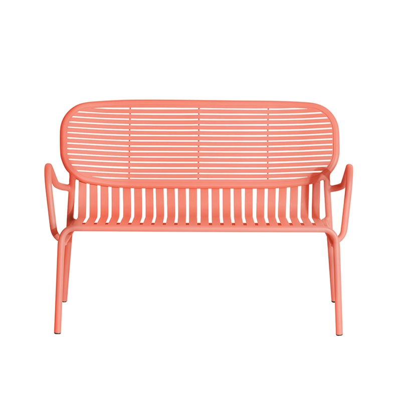 With Week-End, the French brand Petite Friture sets its singular gaze on summer and offers with the studio Brichet-Ziegler a graphic and contemporary approach to garden furniture. This one is played with a rhythm of horizontal and vertical bands skillfully placed on a structure with strong lines. The strips of this outdoor sofa that characterize the Week-End collection published by Petite Friture, are made from laser-cut aluminium sheets in a single piece and not assembled slats, allow the removal of uncomfortable screws or welds. The work of horizontal and vertical slats, like stripes, emphasizes solids and voids, affirming the identity of the collection. The Week-End collection is a complete range of outdoor furniture. The precise colors selected for this collection mark alone or in combination the skyline of a balcony, terrace or garden. This bench is available in several colors such as black, yellow, jade green ... The colouring of the Week-end collection, by Petite Friture, in a grained anti-UV epoxy powder paint guarantees an impeccable maintenance of the hues over time. The design bench proposed by Petite Friture, was designed with the obsession to make the most of materials and techniques available to designers. Made of aluminium, a material selected for its lightness and weather resistance, the Week-End collection combines aesthetic comfort and practicality. Indeed, this collection is resolutely designed around a practical use because all the seats are stackable.