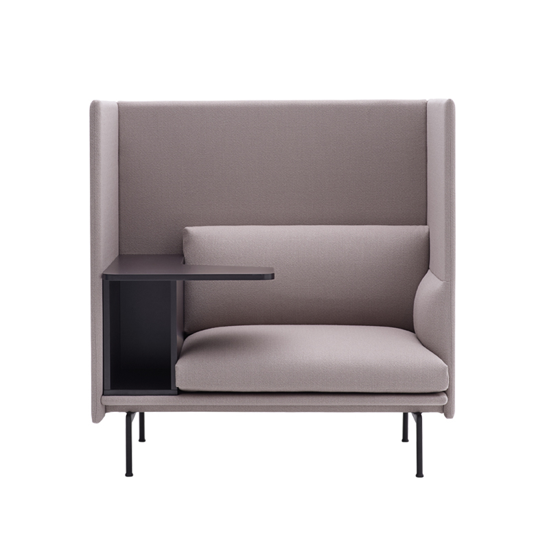 Published by Muuto, Outline Highback Work is designed to fit into all in all workspaces, creating both visual and acoustic shelter. This chair has an elegant and refined architectural expression, with a functional aspect that allows the user to isolate himself in a protected space to work with full concentration. Designed to accommodate the needs of the ever-changing modern workspace, the Outline Highback Work is equipped with a shelf as well as a storage niche. With its sleek silhouette and asymmetrical seat, the Outline Highback Work has a modern yet timeless silhouette that makes it suitable for a variety of environments.