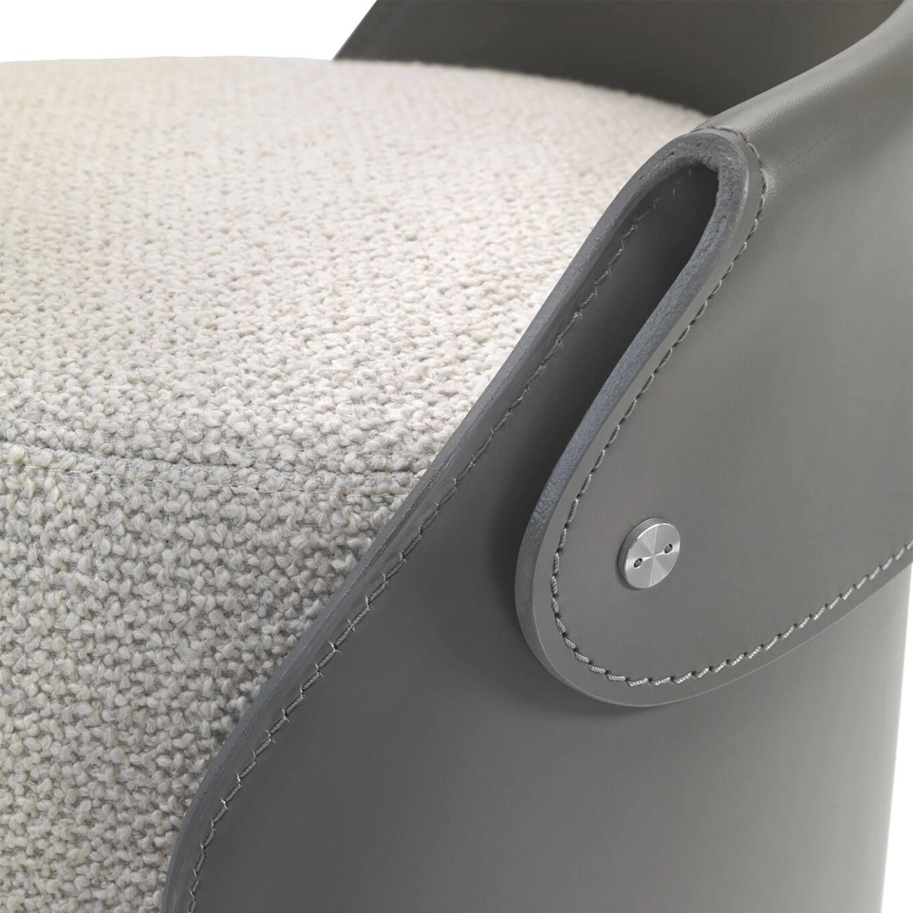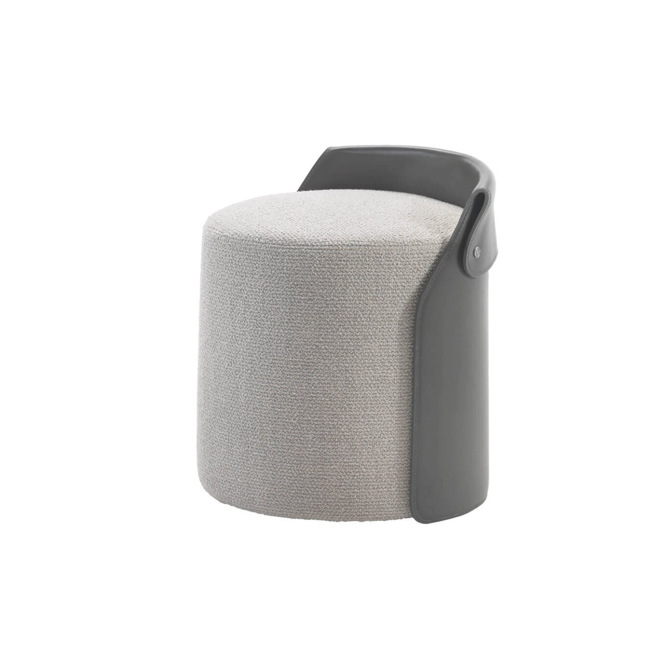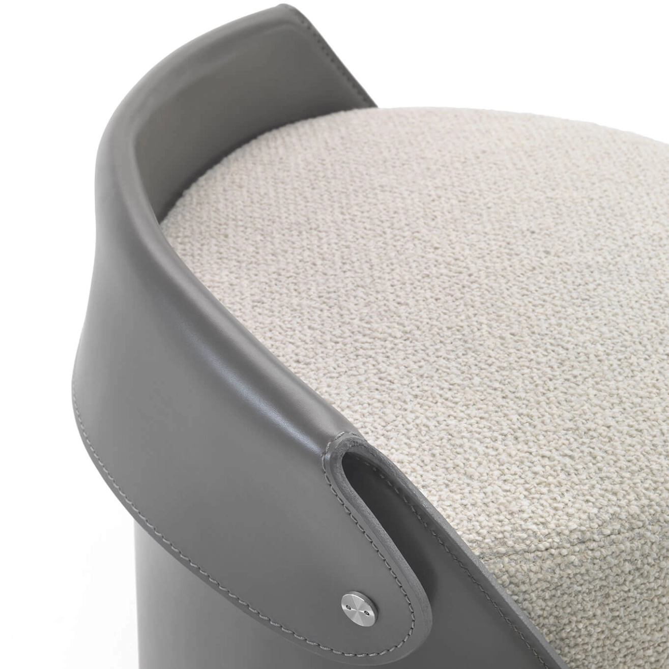 The Ozzy pouf, designed by Patrick Norguet in 2024 for the design brand Flexform, is a versatile accessory with an original design and meticulous craftsmanship. Featuring compact proportions and easy to move, Ozzy is a nomadic object, ready to migrate from one room to another in the home. Countless elegant combinations can be created between the saddle leather part and the seat upholstery, which is available in both leather and fabric. This pouf brings an element of both practicality and style to any space, making it a perfect addition to modern interiors.