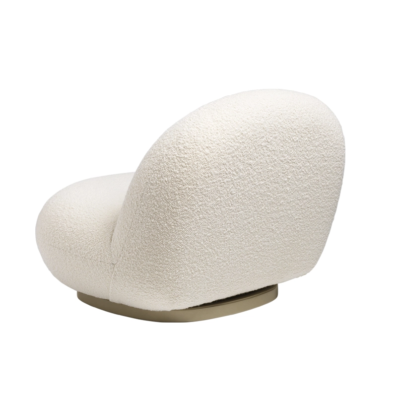 Pacha armchair is upholstered in a superb wool and viscose bouclé fabric, inspired by precious astrakhan furs, with a velvety feel, comfortable and thick.