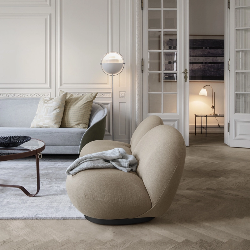 Gubi is the result of lengthy research into the notion of modern comfort. This work is perfectly in tune with the desire for comfort in the bodies of the 60s. Its all-cotton padding makes the Pacha armchair very pleasant to the touch thanks to its softness, making it extremely comfortable. Pacha is a unique model that brings life and character to every style of interior.