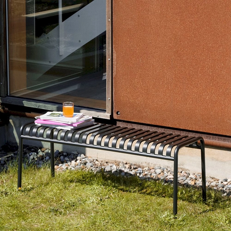 Palissade is a collection of outdoor furniture designed by Ronan and Erwan Bouroullec for the Hay brand. The series consists of a wide range of furniture, in which all the pieces share the same design principle. It includes chairs, small armchairs, lounge chairs, stools, tables and benches. Specially designed for outdoor use, these pieces are visually light but robust in their construction. Inspired by classic furniture, the originality of the collection lies in the details. Although made of steel, this outdoor furniture is comfortable simply because of its design. Each piece is available in olive green, light grey or anthracite and fits very well in a natural or urban environment. With Palissade, the Bouroullec brothers have created a collection of sustainable outdoor furniture that easily combines with all styles: a future design classic!