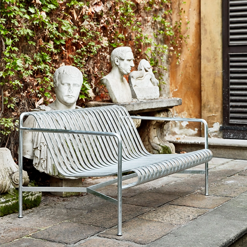 Palissadeis a collection of outdoor furniture designed by Ronan and Erwan Bouroullec for the Hay brand. The series consists of a wide range of furniture, in which all the pieces share the same design principle. Palissade includes chairs, small armchairs, lounge chairs, stools, tables and benches such as the bench with backrest Palissade L128. Specially designed for outdoor use, these pieces are visually light but robust in their construction. Inspired by classic furniture, thePalisade collection by Hay finds its originality in the details. Although made of steel, these outdoor furniture are comfortable simply because of their design. Each piece is available in olive green, light grey or anthracite and fits very well in a natural or urban environment. With Palissade, the Bouroullec brothers have come up with a collection of sustainable outdoor furniture that goes easily with any style: a future Design Classic!