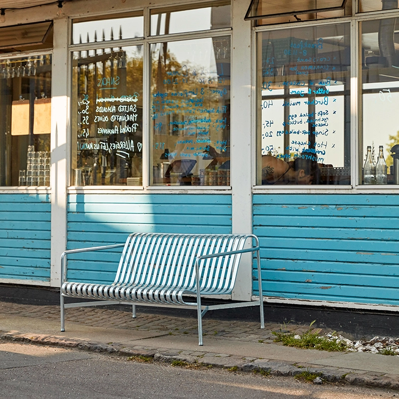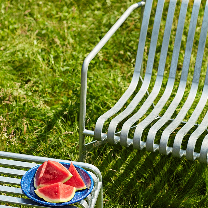 Palissade is a collection of outdoor furniture designed by Ronan and Erwan Bouroullec for the Hay brand. The series consists of a wide range of furniture, in which all the pieces share the same design principle. ThePalissade collection includes chairs, small armchairs, lounge chairs, stools, tables and benches such as the Palissade Lounge L139. Specially designed for outdoor use, these pieces are visually light but robust in their construction. Inspired by classic furniture, the Palisade collection finds its originality in the details. Although made of steel, this outdoor furniture is comfortable simply because of its design. Each piece is available in olive green, light grey or anthracite and fits very well in a natural or urban environment. With Palissade, the Bouroullec brothers have come up with a collection of sustainable outdoor furniture that goes easily with any style: a future Design Classic!