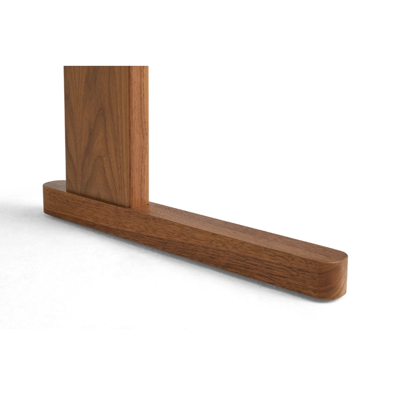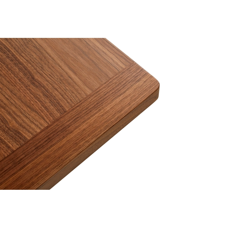Plateau Lisocore plaqué bois, bords du plateau bois massif, pieds bois massif et contreplaqué, laque à base d'eau, barre transversale acier laqué