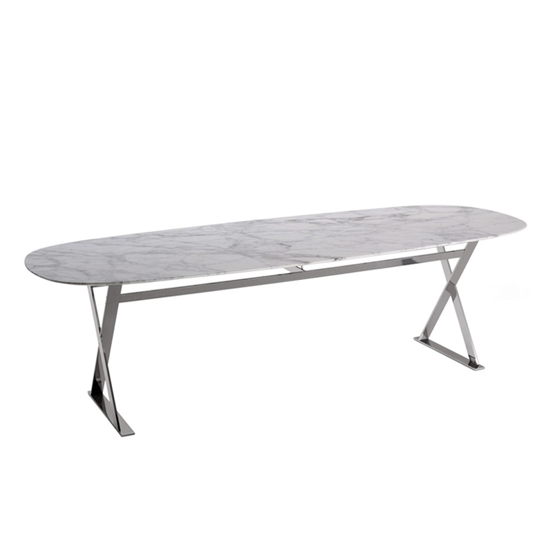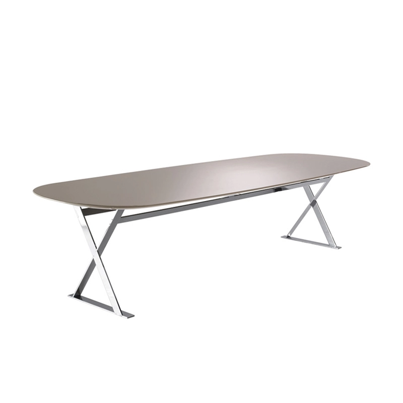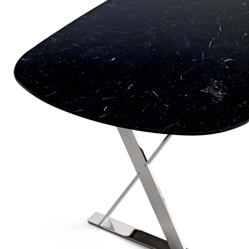 Pathos by Antonio Citterio for Maxalto represents the evolution of the Max table, whose structure changes. The tabletop is rectangular or square, rounded on the corners, with the elegant detail of curved edges, available in marble or lacquered MDF wood in glossy colours: desert, anthracite, steel grey, marsh brown or brick-red. The Pathos table frame is in bright chrome-plated steel, bronzed nickel varnish, satin brass or with a copper finish. It looks incredible in all contemporary dining rooms.