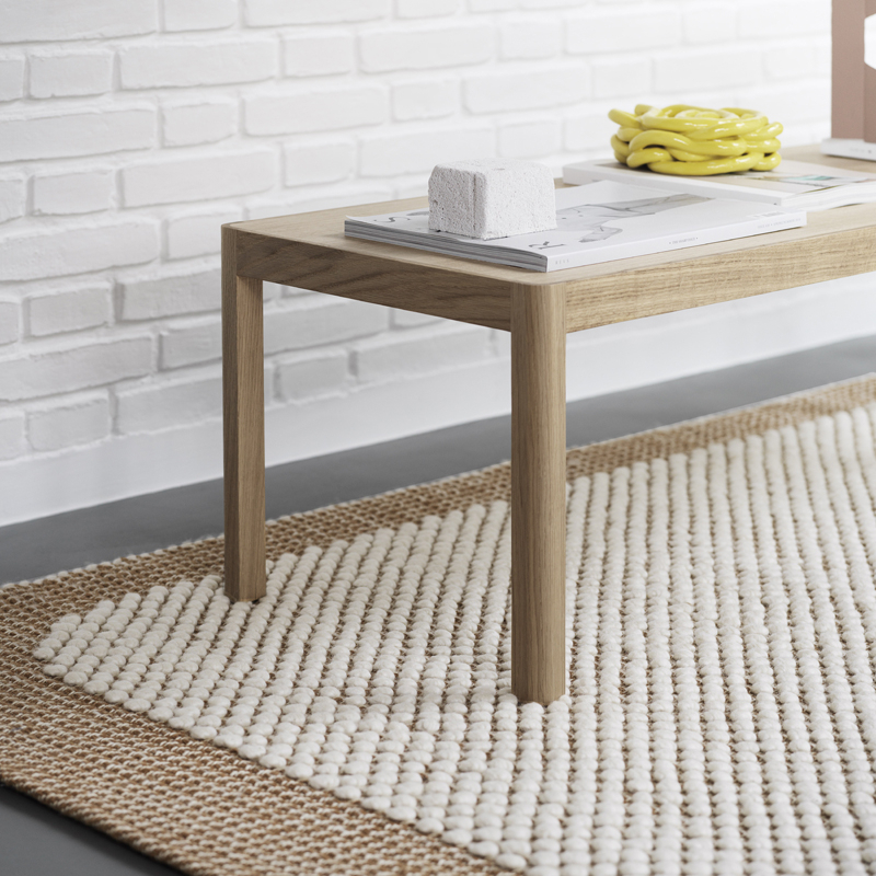 The Pebble carpetby Margrethe Odgaardfor Muuto plays on the contrast of materials for a vibrant and sophisticated expression, coupled with a modern colour palette. Featuring a jute-fibre body, the pebble carpet gets its name from the fluffy wool curls that give the sensation of walking on a pebble beach, as you pass over the carpet barefoot. With its wool curls, Pebble has an expression that is both graphic and illustrative, enhanced by the rounded corners. Published by Muuto, the rug is handwoven and made in India from 100% New Zealand wool. The structure of the Pebble rug is made from jute canvas.
