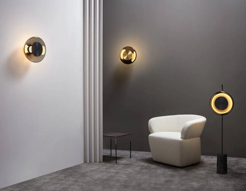 Created by Dan Yeffet, Pendulum is a striking collection of contemporary lighting fixtures that blends European design elegance with British craftsmanship. In this series of designer lighting fixtures, light oscillates in concentric circles from the light source, captured and diffused by the curved, mouth-blown glass. The heart of the Pendulum brass light is hand-polished by CTO craftsmen to achieve a satin finish that beautifully accentuates the light and perfectly matches the refinement of the design. The Pendulum collection includes a pendant light, a wall light and a floor lamp. It is available in a satin brass or bronze finish.
