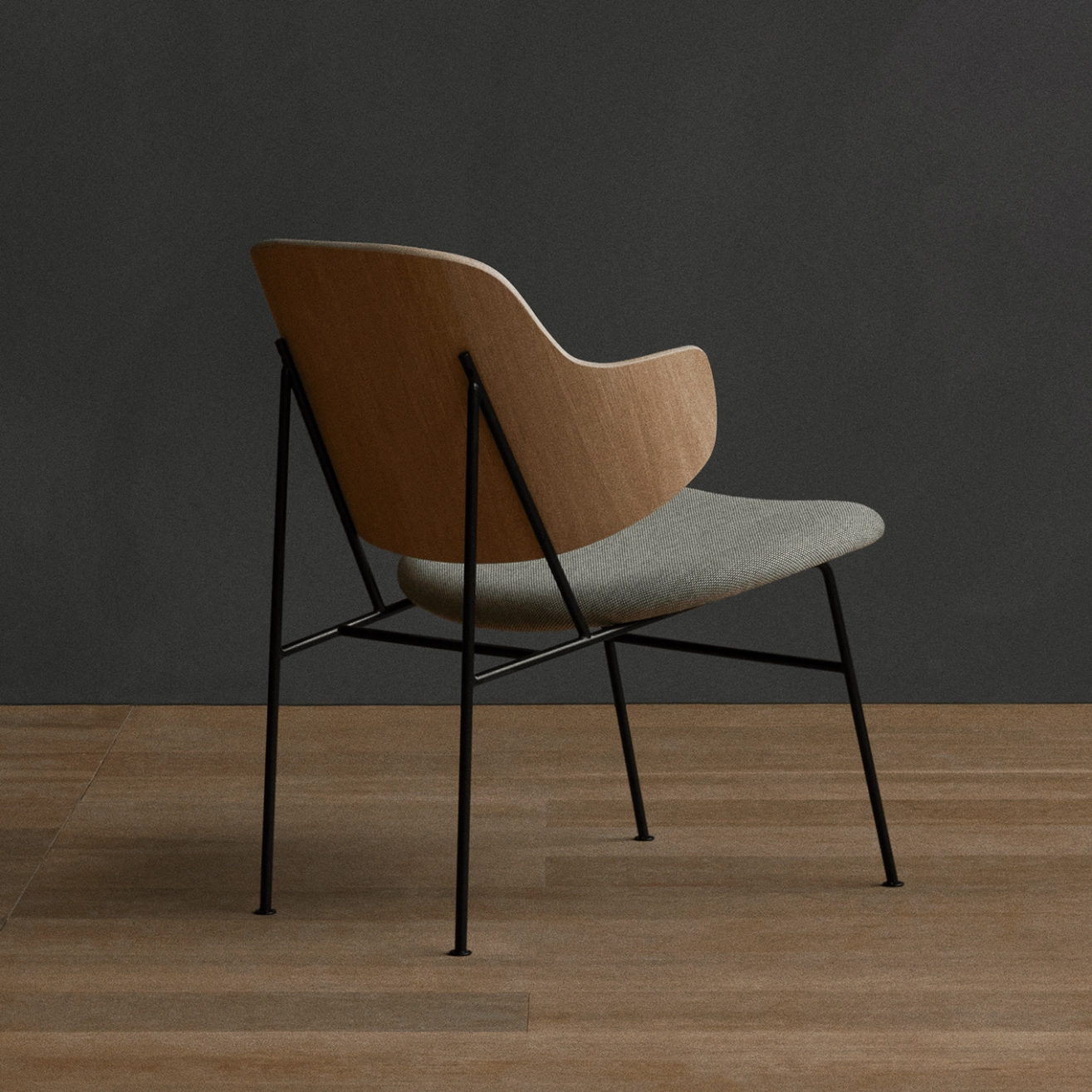 The armchair PENGUIN Natural Oak Re Wool 218 embodies a contemporary and responsible reading of design according to Audo Copenhagen. Heir to a modernist writing with clear and functional lines, it combines the brightness of natural oak with the subtle texture of Re Wool 218 fabric to compose a piece that is both graphic and warm. Its balanced silhouette, with a discreet but assertive presence, fits perfectly into demanding interiors. Designed to accompany everyday spaces such as professional environments, the PENGUIN armchair naturally finds its place around a dining table, in an office, a meeting room or a contemporary hotel project. Its natural oak structure brings clarity and authenticity, while the Re Wool 218 coating, textured by hand and elegant fall, reinforces seating comfort and perceived quality. It thus responds to interior architecture projects seeking both visual lightness, durability and aesthetic coherence. The precision of the proportions and the sobriety of the lines reflect an approach where form serves use with evidence. The dialogue between the wooden structure and the upholstered seat creates a harmonious balance between rigor and softness. Designed to last and evolve with the spaces it inhabits, the PENGUIN armchair is an elegant and durable solution for residential or high-end contract developments. The PENGUIN armchair stands out for its modernist silhouette with clean lines by the bright alliance of natural oak and Re Wool 218 fabric for its comfort suitable for everyday or professional use and its ability to structure a space with sobriety and elegance.