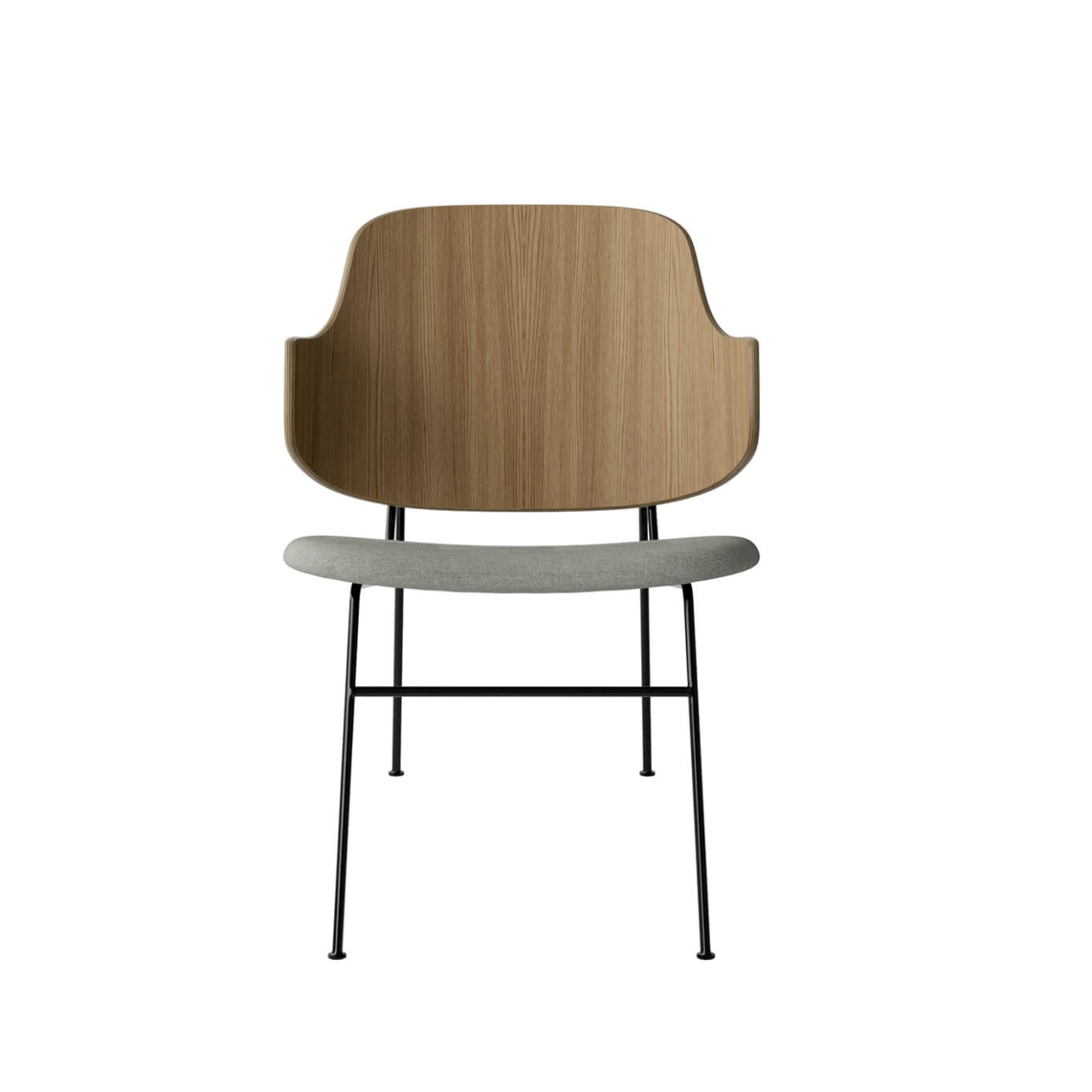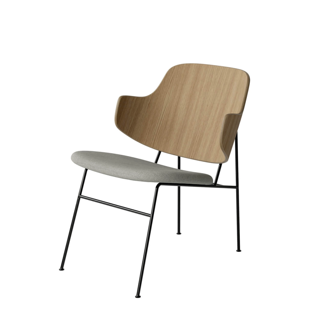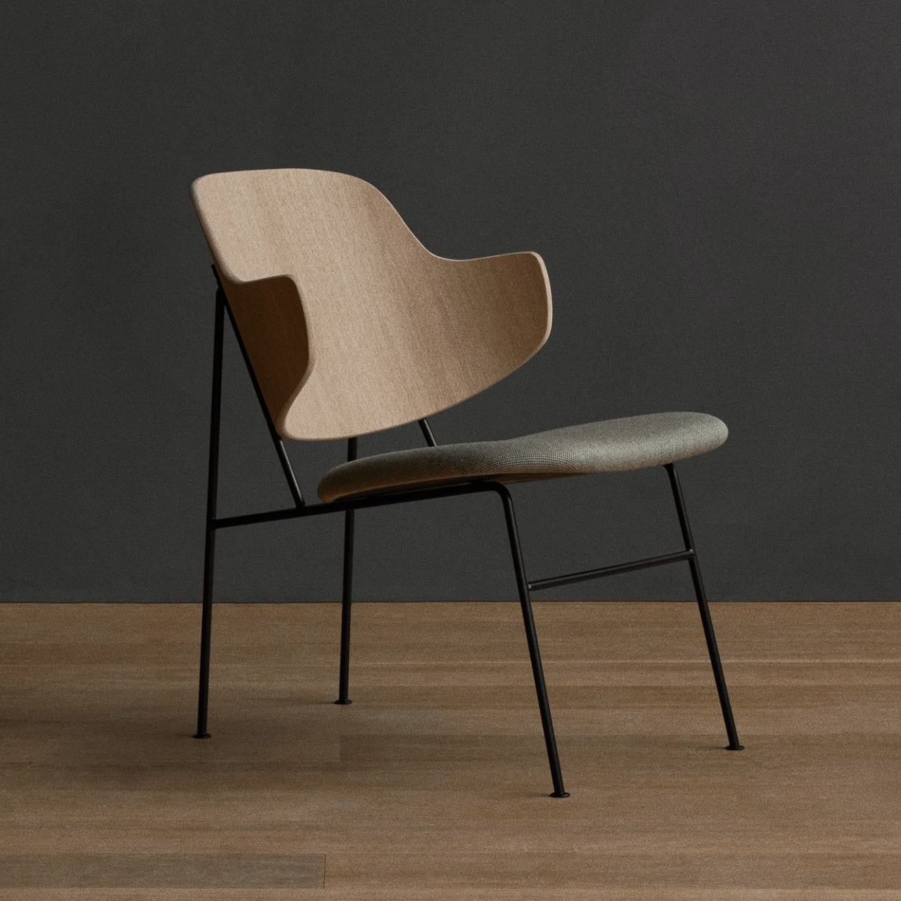 Moulded plywood, natural oak veneer, powder-coated steel, foam, fabric