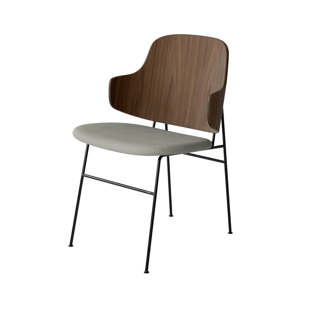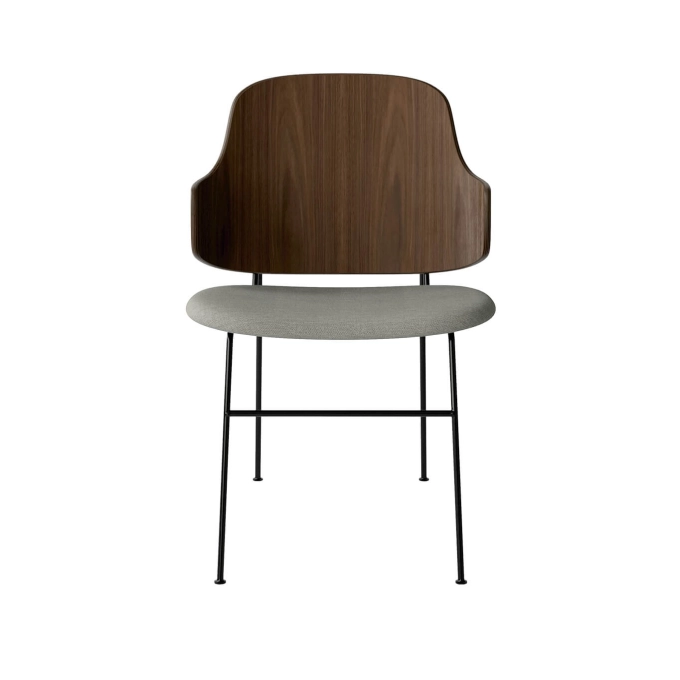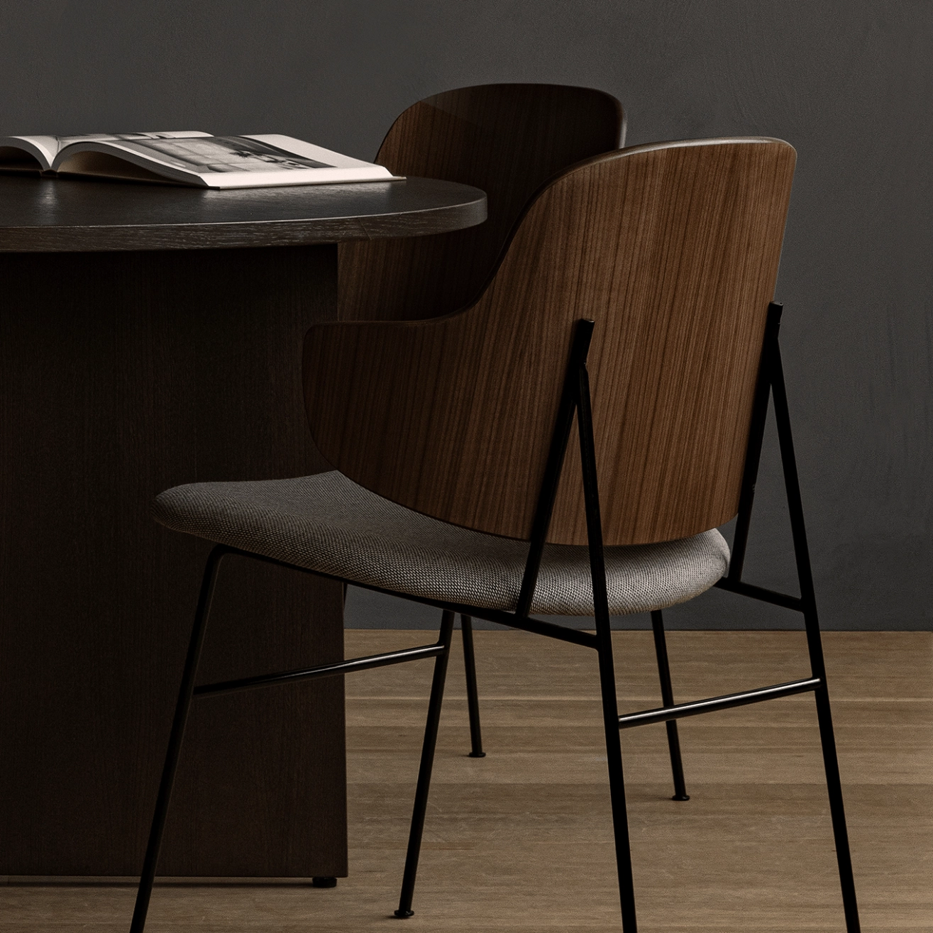 The PENGUIN Noyer Re-Wwool 218 chair reveals all the richness of a design that is both iconic and timeless, where the sculptural curve of the backrest meets the warm depth of walnut. Faithful to the approach of Audo Copenhagen, it combines modernist heritage and contemporary requirements, offering an enveloping silhouette whose fluid line emphasizes the precision of proportions. The walnut, with deep brown shades and expressive veining, gives the room a sophisticated presence, while the upholstered seat of Re-Wine textile 218 brings comfort and texture, reinforcing the balance between formal rigor and tactile softness. Around a high-end residential dining room table, in a restaurant, a meeting room or a refined hotel project, the PENGUIN integrates with elegance and ensures an ergonomic seat suitable for prolonged uses. The contrast between the visual density of wood and the nuanced richness of textile creates a harmonious dialogue with mineral trays, metallic materials or deep textiles, participating in a warm and structured atmosphere. Its design is based on a precise research of curves and lines, translating a durable design where aesthetics and functionality match with evidence. The PENGUIN Noyer Re-Wwool 218 chair is distinguished by the iconicity of its sculptural backrest, the expressive nobility of its wood, the refined comfort of its upholstery, and its ability to become a signature piece within sophisticated residential or contract interiors.