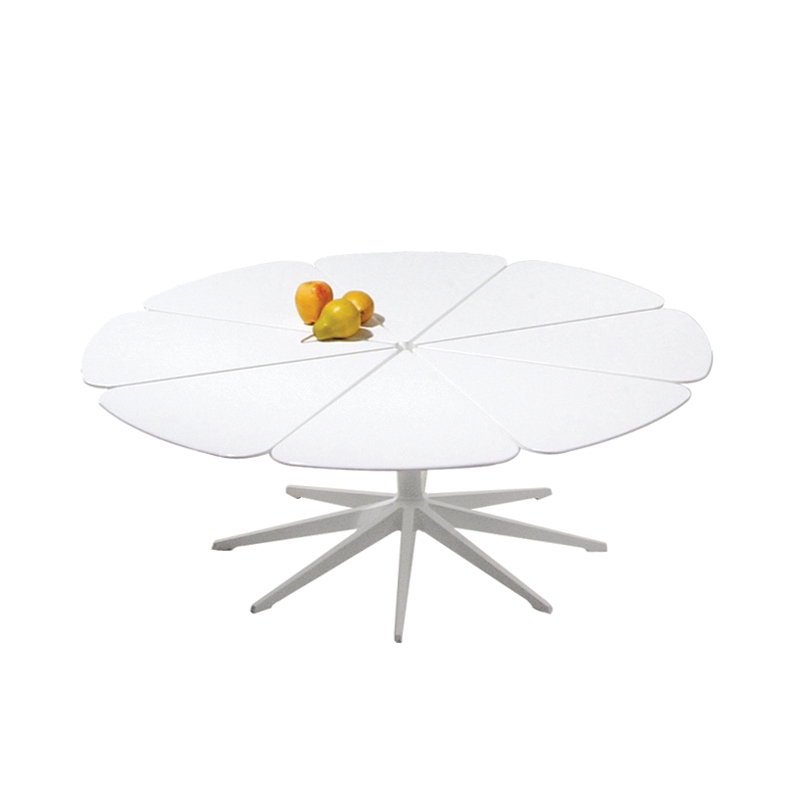 For this collection of Petal tables, designed in 1960 and produced by Knoll, Richard Schultz was inspired by a plant: 'Queen Anne's Lace'. The tabletop is made up of eight polyurethane petals and is fixed on an elegant and graphic star-shaped base made of cast aluminium. Each petal is independent of the others, and can expand or contract slightly depending on the weather, ensuring the table's stability year round, so you can enjoy it in your garden as soon as the sun comes out!