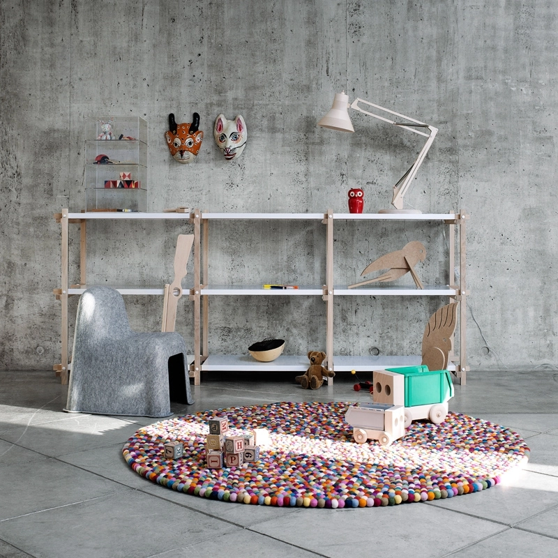 Pinocchio takes its name from a Danish delicacy: 'Pinocchio kugler', which are small, brightly coloured, sugar-coated licorice balls. This round carpet, produced by Hay, recalls them in its pattern, which will make you smile with its bright and invigorating colours. Made in Nepal, each ball is handmade and then strung on a thread like a bead necklace. Original, graphic and cheerful, Pinocchio is a riot of multicoloured confetti that brightens up the room while providing the comfort and exceptional softness of wool.