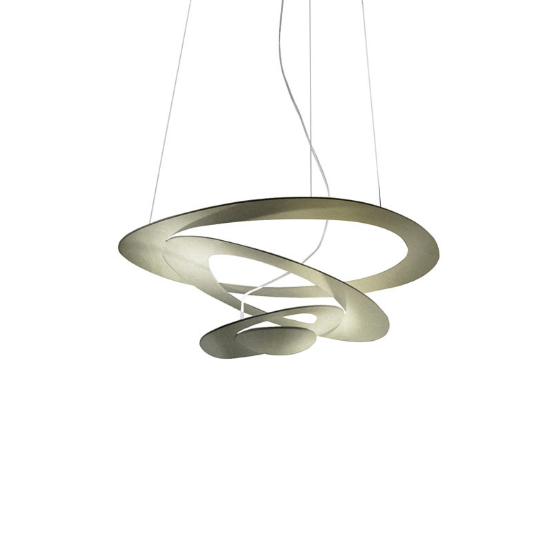 Pirce Micro is a pendant lamp with an ethereal design, created by Giuseppe Maurizio Scutellà for Artemide. A thin disc is cut to create floating swirls that gently spiral downwards, creating magical effects of light and shape. Available in white, gold or black, this pendant lamp will add a sculptural touch to your interior.