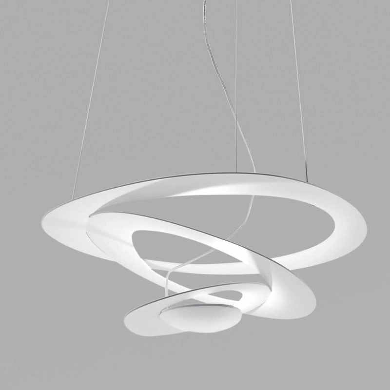 Pirce Micro is a pendant lamp with an ethereal design, created by Giuseppe Maurizio Scutellà for Artemide. A thin disc is cut to give rise to scrolls. ... Learn more