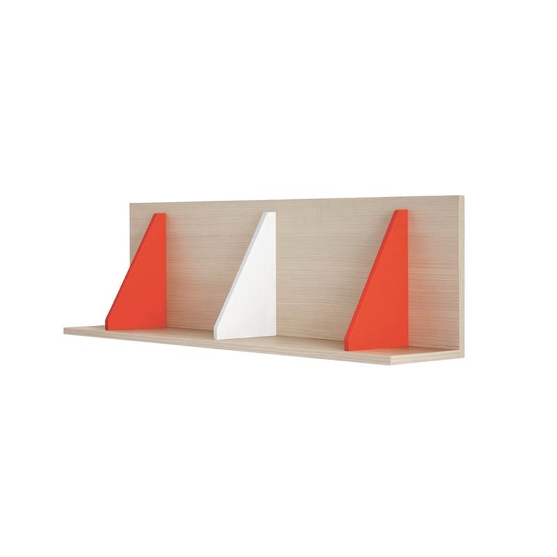 Designed by Nidi, Pitagora is a small shelf with a contemporary look, designed for children's bedrooms. It has a wood-finish structure and white and red dividers, which can be used to hold books, for example. Pitagora can be used on its own or in a composition of several peices to create a full-length storage unit. This shelf is ideal above the desk to provide additional storage or above the bed to display toys and cuddly toys.