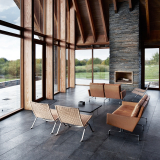 The understated and elegant PK22 easy chair perfectly embodies the work of Poul Kjaerholm and his quest to combine ideal forms and industrial dimensions. Designed in 1956 and produced by Fritz Hansen, this easy chair has become a design classic. The stainless steel structure originates from his diploma project, the "Element" chair, obtained from the Copenhagen School of Applied Arts. The PK22 is available in black or dark brown leather, and also in wickerwork, with a satin stainless steel frame.