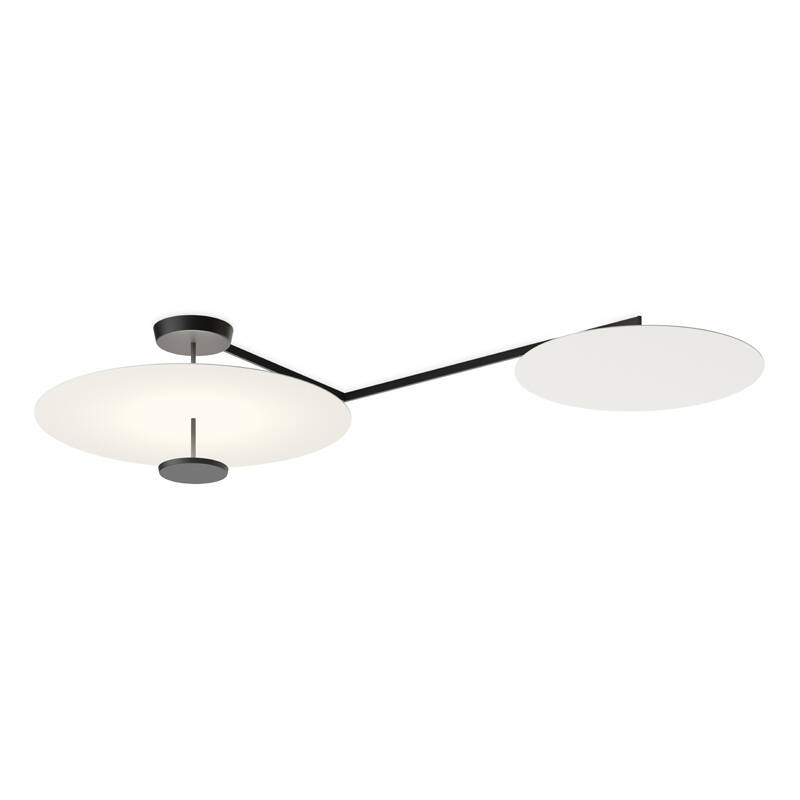 Suspension and ceiling lights are available with two or four discs of medium or smaller size. Deployed in tandem, the smaller discs work together to capture and reflect light onto the larger ones, creating bubbles of soft, diffused light.