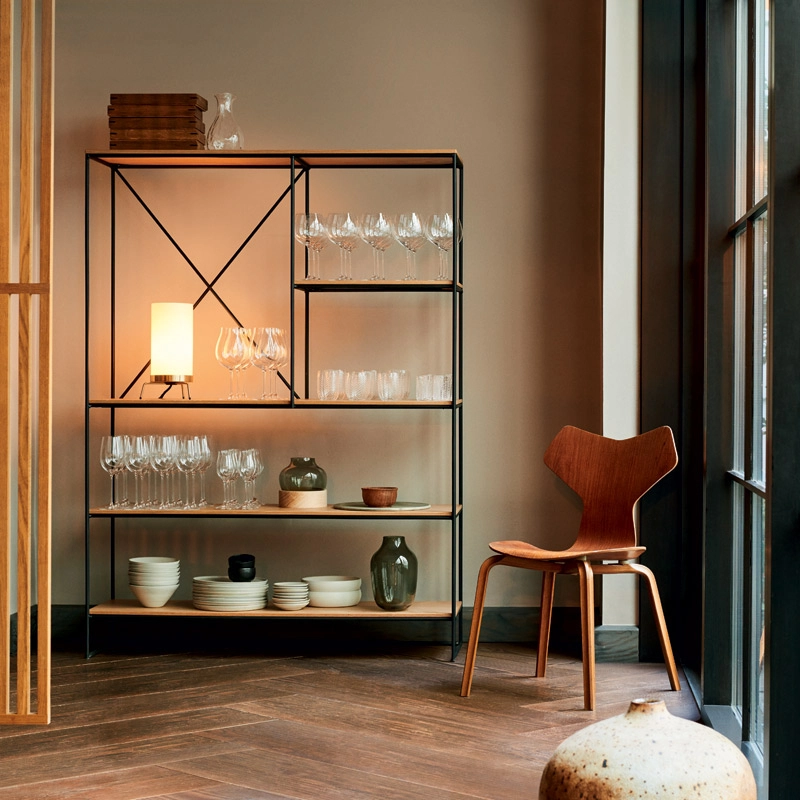 Designed in the 1950s by Paul McCobb, the Planner shelving system is a series of elements for displaying and storing objects. Inspired by Bauhaus, the Planner embody a design that is always modern and versatile.The designer emphasised simplicity and functionality to achieve pure lines. Its natural oak shelves are bevelled at the edges so as to be perfectly integrated into the frame. The cross-shaped uprights on the wide version of Planner provide additional support while creating visual interest in the space. Its name refers to its ability to facilitate the organisation of a room. The Planner shelves come in 3 versions with different heights and configurations. Allowing a layout that adapts to individual tastes and needs, this system published by Fritz Hansen fits perfectly within private and professional spaces.