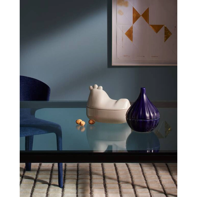 The collection of Taac containers is a creation by chef Davide Oldani for the Cassina brand, offering a metaphorical reinterpretation of the concept of seasonality at the table. This collection consists of four glazed ceramic containers in the shape of a pumpkin, onion, asparagus and chicken, available in three colours. Through sensoriality, the elements of Taac containers sublimate the very nature of the ingredients. Each container has a bell-shaped lid, revealing the recipe's main seasonal ingredient.