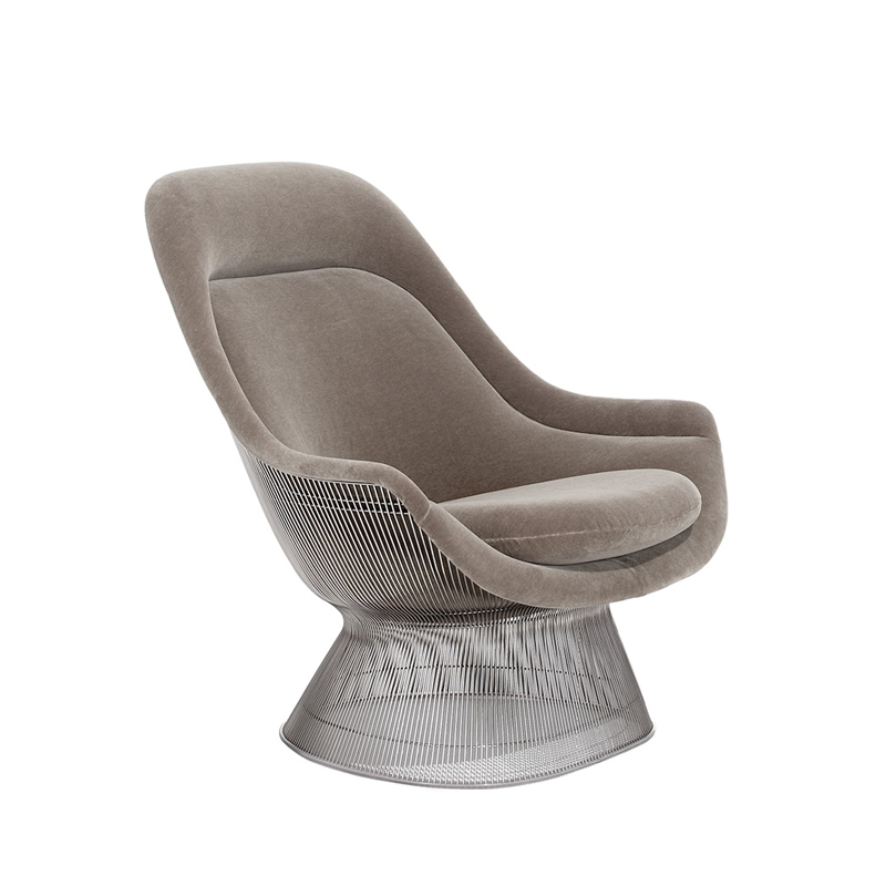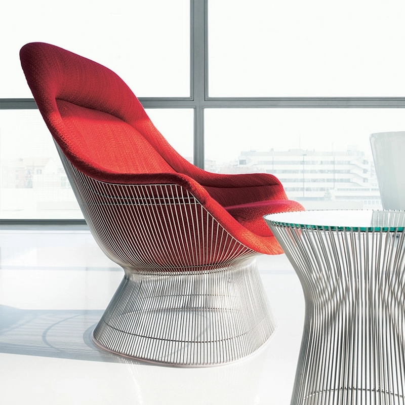 In 1966, Warren Platner designed a collection of furniture, which became iconic, characterised by a sculptural silhouette. By transforming simple steel rods, the architect and designer created an elegant collection of chairs and tables with a base made of bundles of steel wire. The result is of remarkable harmony and elegance. While the pieces in the Platner collection have been produced by Knoll without interruption since their creation, the Platner Easy Chair were only made from 1966 to 1988. Made entirely by hand, the curved Easy Chair offers generous comfort.